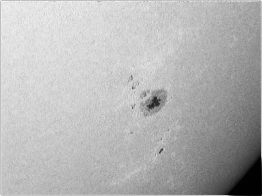 This is Sunspot 1482 taken with the DMK webcam. While not as contrasty as the images posted a few days ago, its placement in the faculae mages it a much more interesting image. Processed in Registax 6, this was a 2000 frame avi file, with the remaining 60% best frames added to the stack.