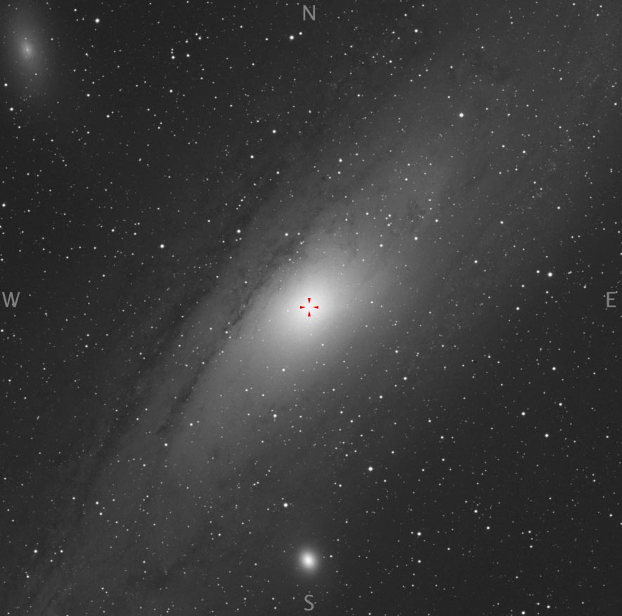 First Deep Sky views with the Hexascope.Visible extent of Galaxy covers just under one eyepiece worth – about 1 degree. A bright core is tight and small except with averted vision where it seems to grow and resemble a very tight Globular cluster and very granular. The outer spiral is very flat at less than 15′ thick.