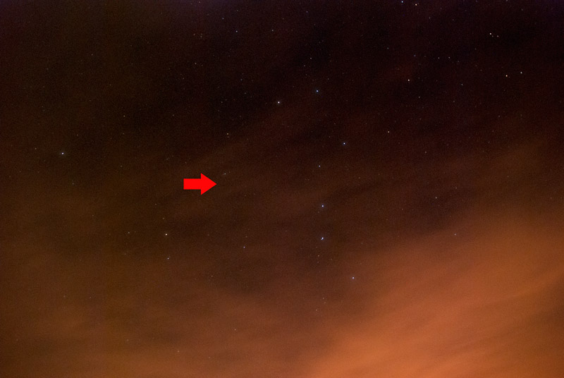 I did want to get a picture of Ursa Major before conditions deteriorated, so we stopped off in a lay-by on the way home and got the Nikon out . This is the result. The 30 second exposures were never going to capture 2012 DA14, but I have estimated where 2012 DA14 was when I took this image and have marked the spot. The nebulosity is the sky glow from Truro to the South West from what appears to the naked eye, to be a dark field location located Nr Trispen.