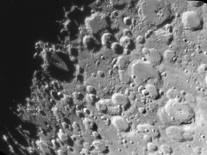 The Moon was up this evening so before I started any of the above, I gave the terminator a good look. I was struck by the crater Maginus and how a gap in the craters edge allowed that streak of light to fall on the crater floor illuminating the central peaks. The peaks themselves cast their own shadows across the floor.