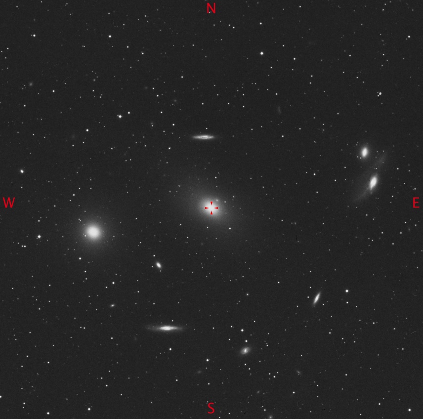Whoosh meteor, followed by slower moving satellite pass through the FOV while making observation. M87 round in shape, with obvious core. NGC4476 appears brighter at 12.3 mag than NGC 4478 at 11.2 mag. The size of both is similar, but with the fainter galaxy being slightly smaller, but concentrates the apparent brightness enough to make a difference.