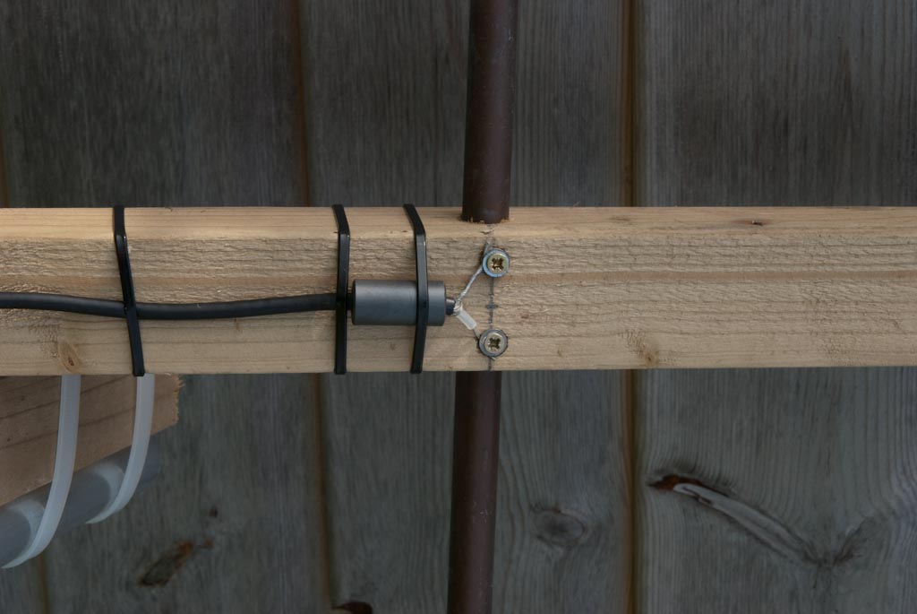 The 50mm square wood supports  the copper tube elements and also acts as an insulator.  The director and reflector components just pass through 15mm holes drilled into the wood.