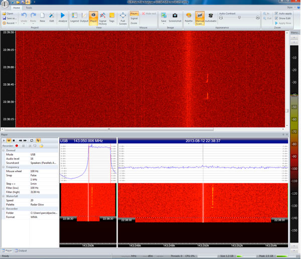 Another was  Spectrum Lab. This is the software, which most Meteor scatter people seem to use, but like Radio SkyPipe, I just couldn’t get it to be able to take the output from the FCD. The programme is quite complex with lots of parameters that need setting. However it has been used for this kind of work and with the FCD, so I will continue to persevere with it in the hope I can get it to work.