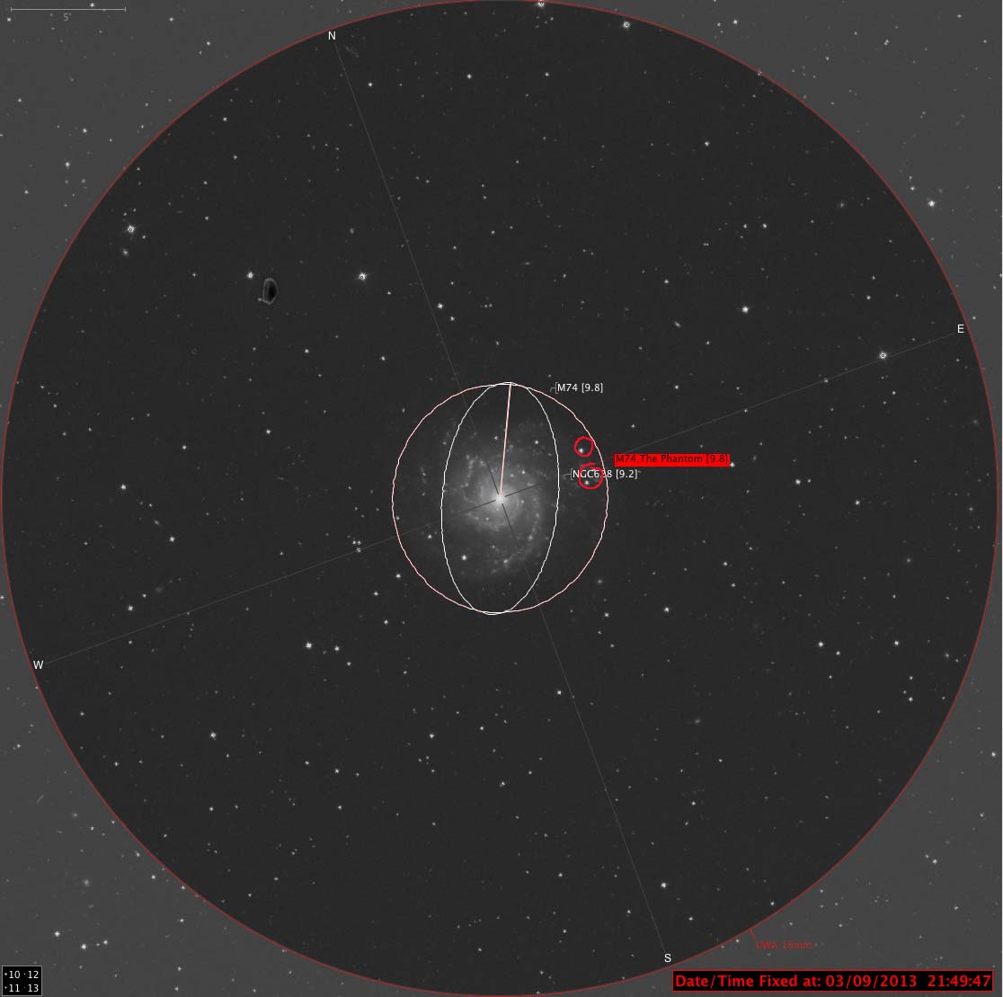 M91 is just off centre of the FOV, but at 15th mag, it’s only just visible with averted vision. Off to the the 5 and 6 o’clock,  are what look to be 3  fuzzy stars which the chart says are the galaxies NGC 80, 83, and 82.