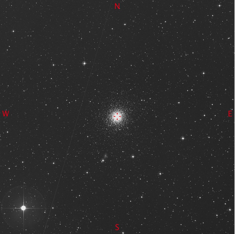 Switching to the Altair Astro 250mm, UWA 18mm, 113 X, 35.6′, there looks to be two guide stars ( marked in Blue on the image). SAO11308 at 9.0 mag  to the edge of the FOV in the S/W  and SAO11316 at 9.0mag just outside the cluster circle marked on the chart.