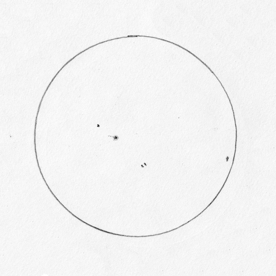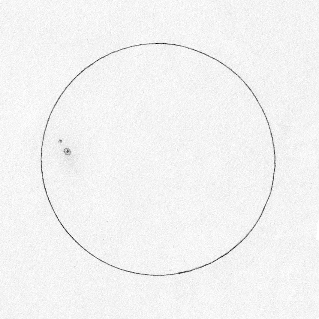A discussion at our last astronomy club meeting had me thinking it would be fun to try sketching the Sun over a period of time. As luck would have it,  I had made a sketch earlier that afternoon, so decided to give it a go for a week.