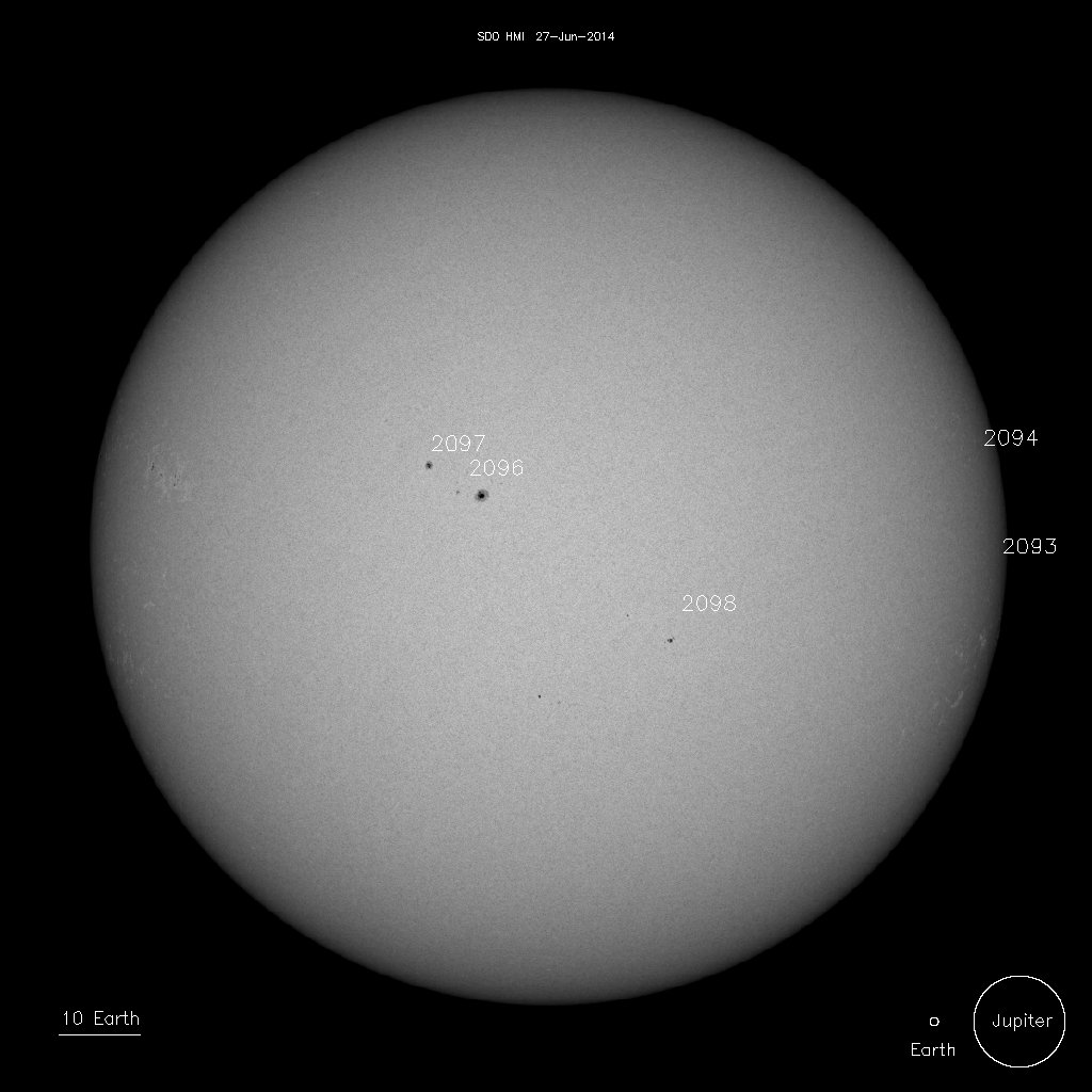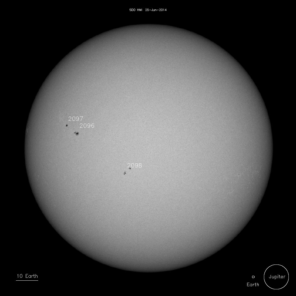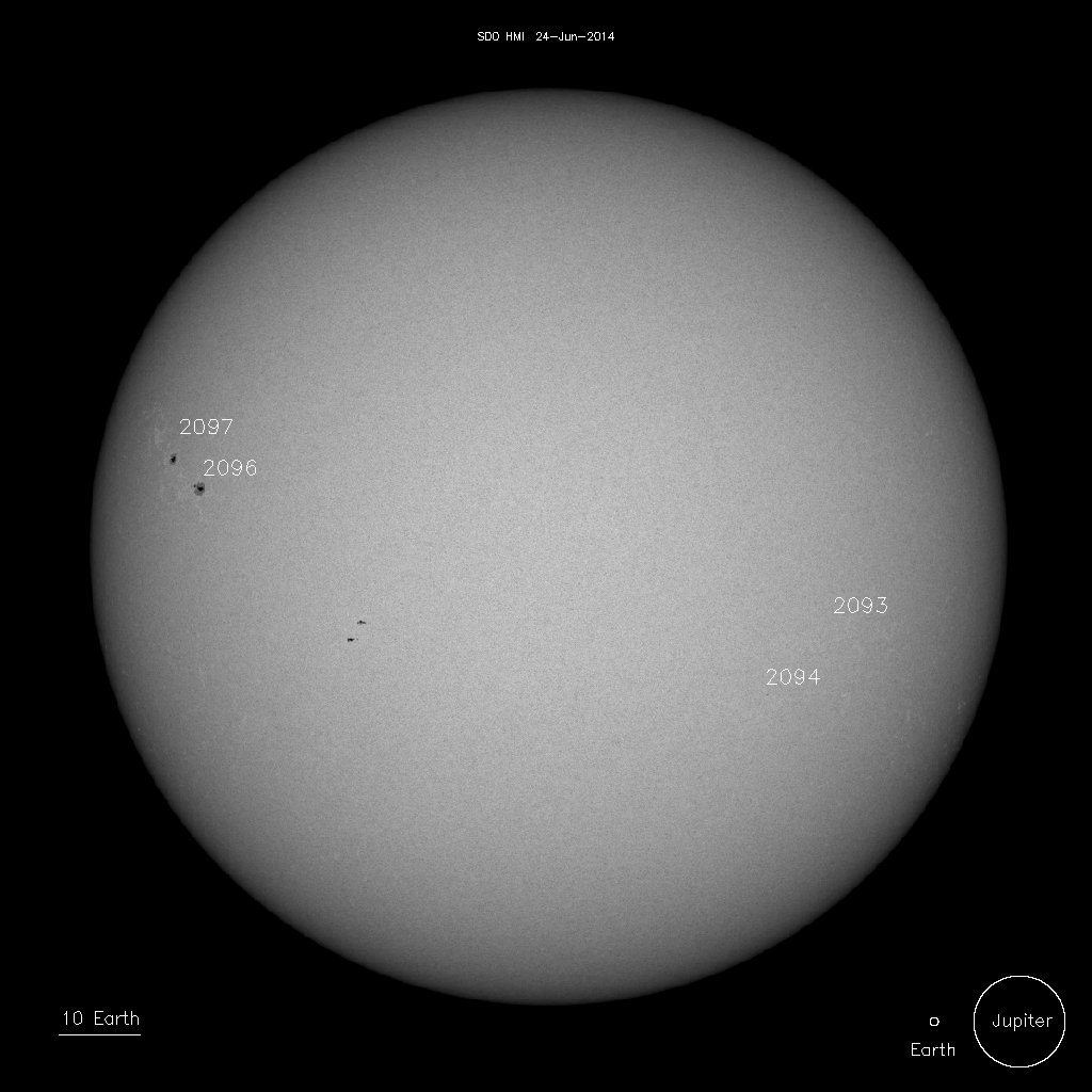 24, June 15:49UT.  Close-up detail of Sunspots 2095 and 2097.
