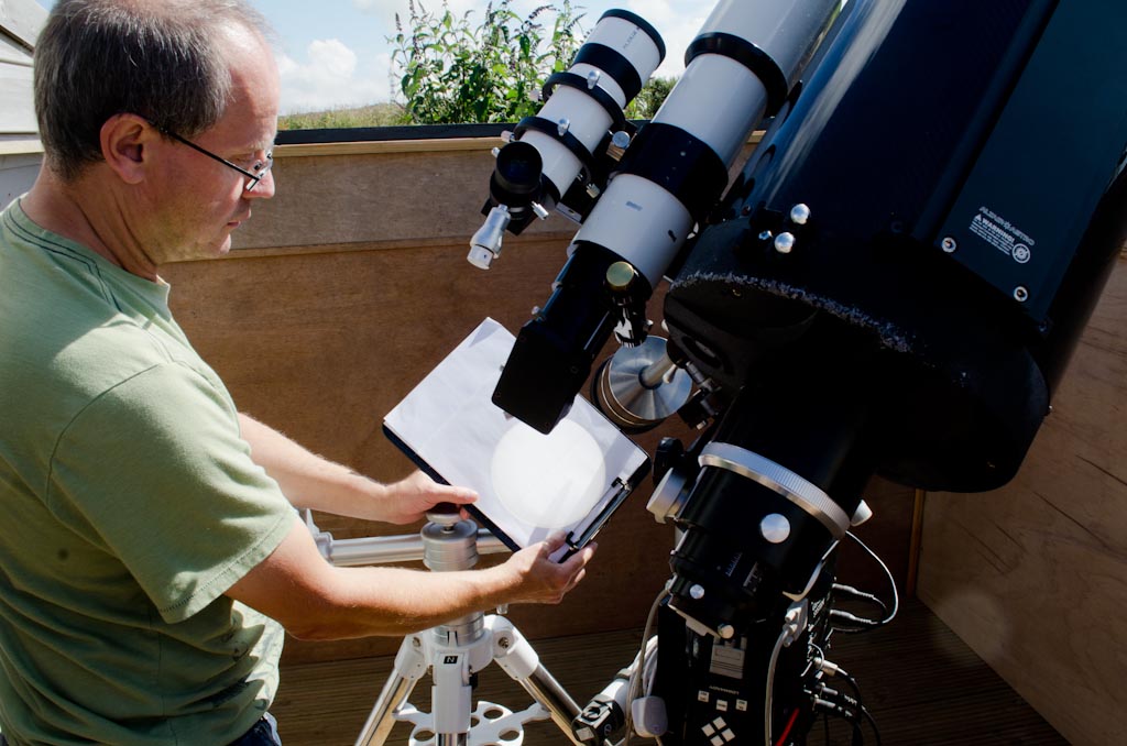 In the base of the box, I have glued in some white Plasticard. This is there to allow for a brighter view for multiple observers at star parties. For Sun disk drawings, I will overlay paper with a printed 152mm circle onto the Plasticard. This can be held down using a Bulldog clip.