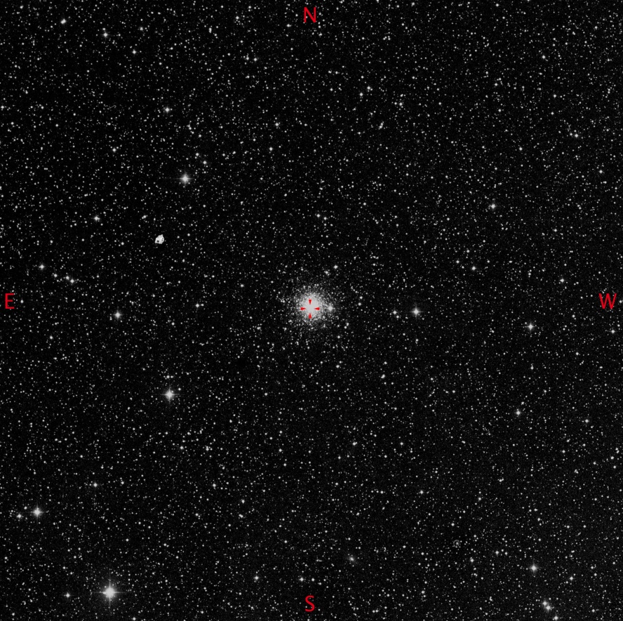 In the Altair Astro 250mm, Delos 14mm, 145 X, 29.8′, West is to the 7 O’Clock There are three prominent stars going out from the centre of the FOV to the West. PPM 170284 at 9.0 mag, PPM 170269 at 10.6 mag and at 9.0 arc secs out SAO 125946 at 9.4 mag. All form a straight line pointing to the Globby. The Globular is small, very diffuse and doesn’t have a stellar core.