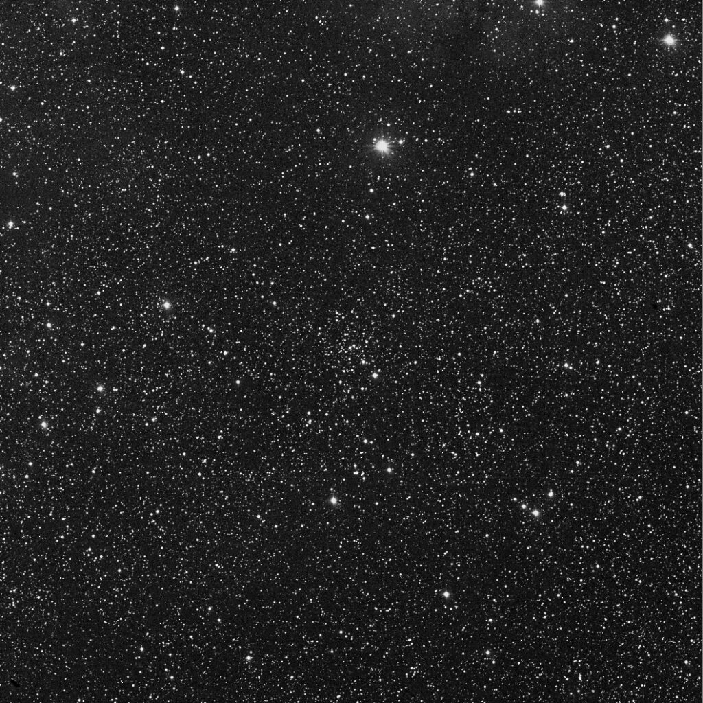 Through the eyepiece the cluster appears to be made up of about 10 stars within a circle of about 10 arc/min This concentration positioning doesn’t quite match the circle on the star chart, which appears to be shifted to the North slightly. These stars are in the 11.0 to 12.0 mag range.
