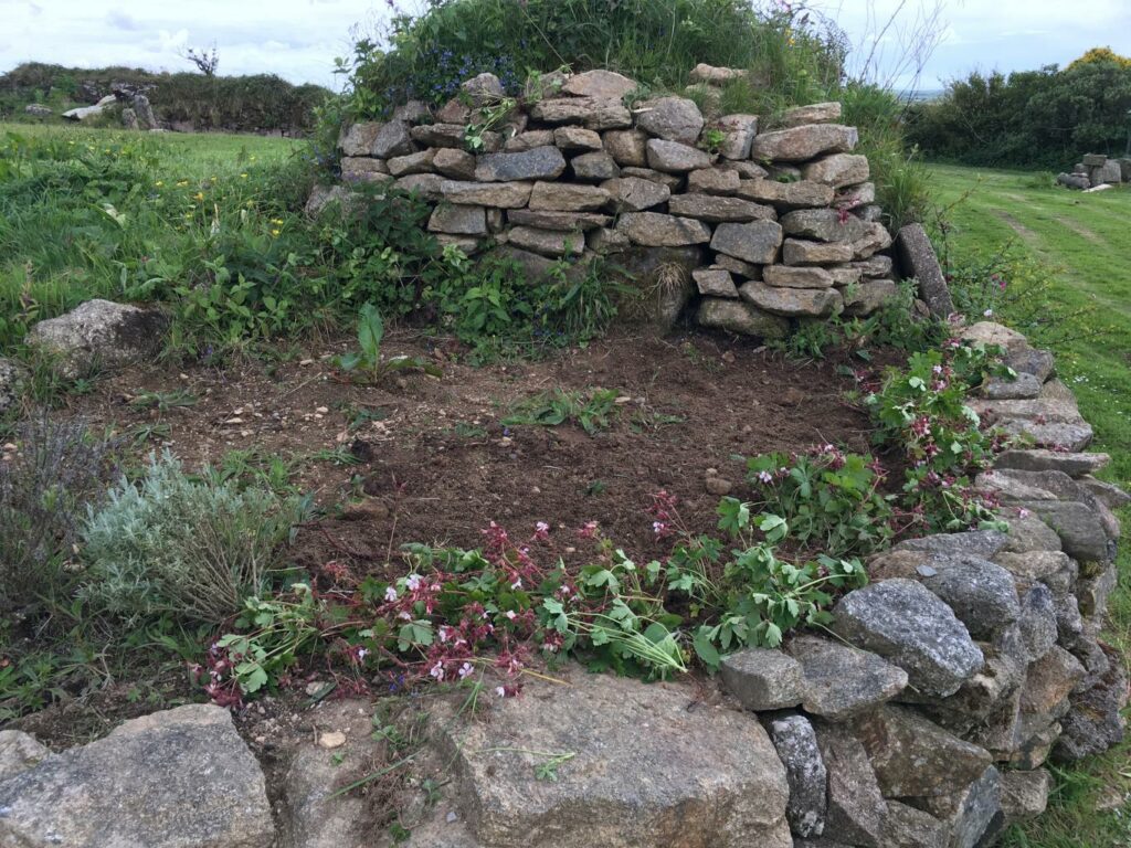 In an effort to soften the stonework as well as add a bit of colour, we moved a wheelbarrows worth of Geranium to the Garage flowerbed.