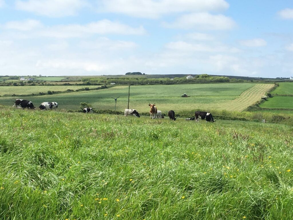 Yesterday were the first cuts adjacent to our policies. The farmer who owns these fields has a beautiful herd of Ayrshire milkers, so will be cutting the grass to go in a silage clamp.