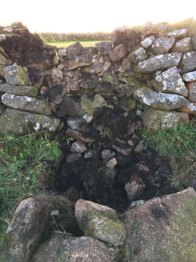 The whole process took most of the afternoon and you can see why a professional dry stonewall wall rebuild costs in the region of £50 – £90 a metre.