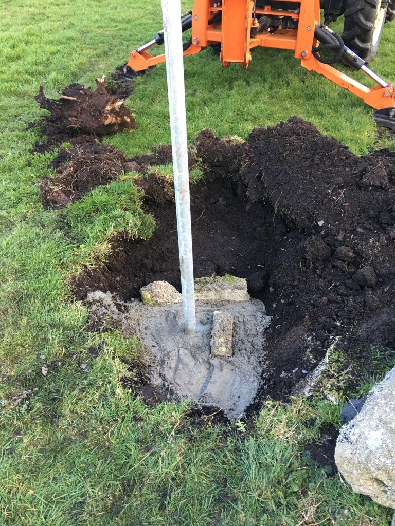 The second was to encase the base of the pole in 4 bags worth of sand, cement, breeze blocks and rock.