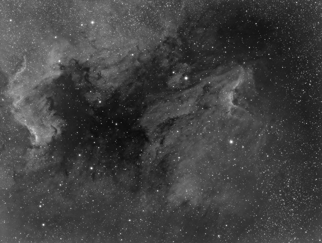 NGC7000 ( North American nebula) and IC7070 ( Pelican nebula) – both of which are named for blindingly obvious reasons are both one single structure. The void ( L935) separating the two is a band of interstellar cloud of dust that obscures the stars behind it.