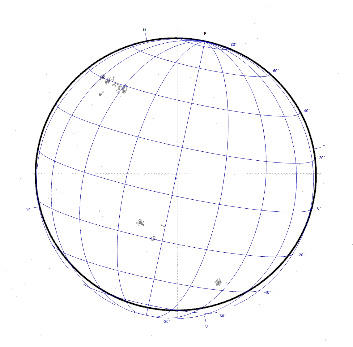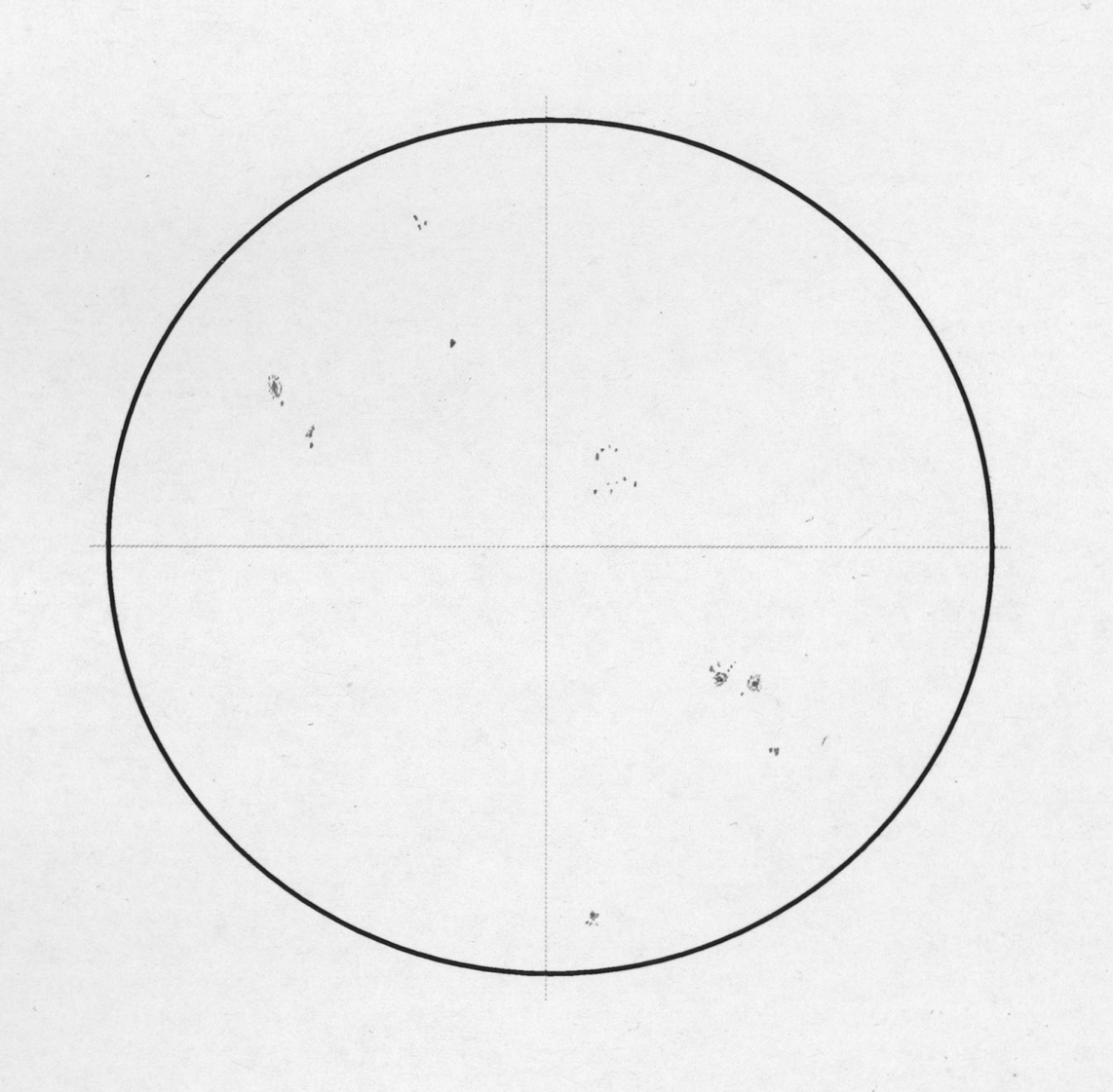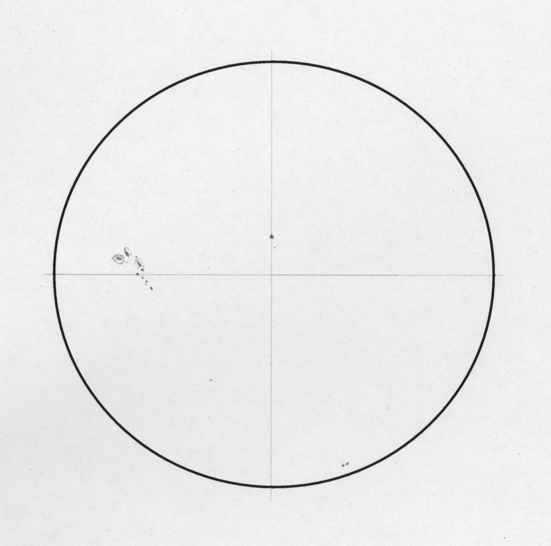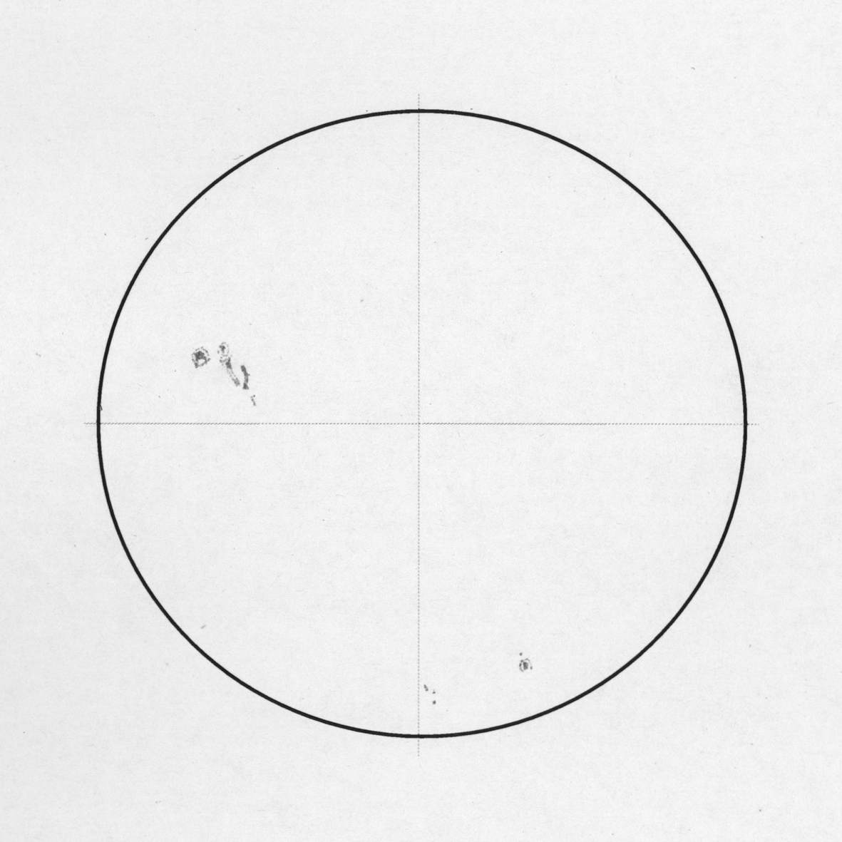 The following are the drawings made at the eyepiece and are displayed with the Zenith up with the second image with a Helio Viewer cardinal overlay. Click the image to see a full-size preview.