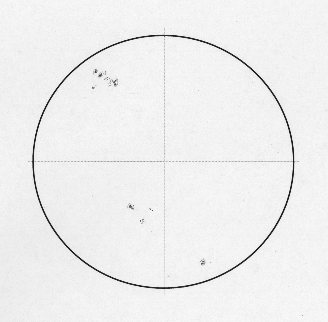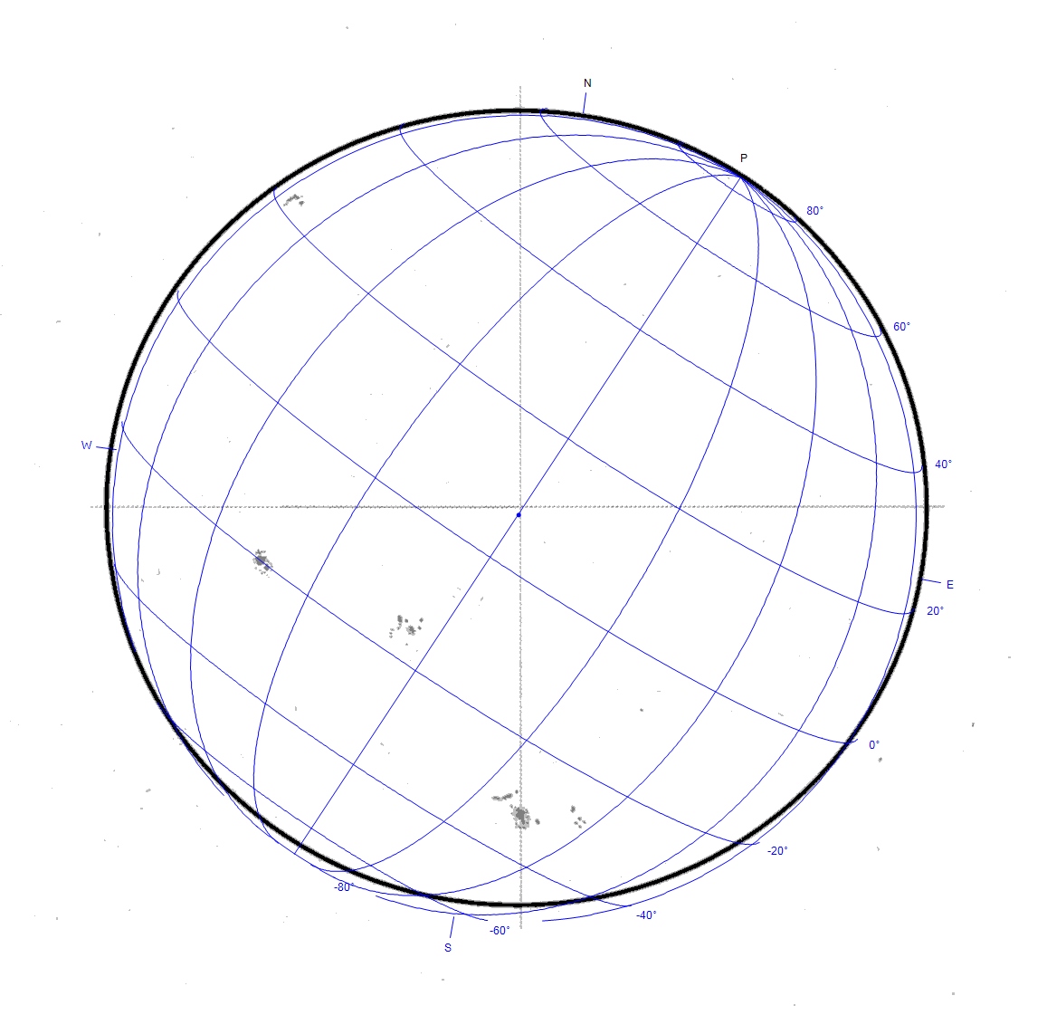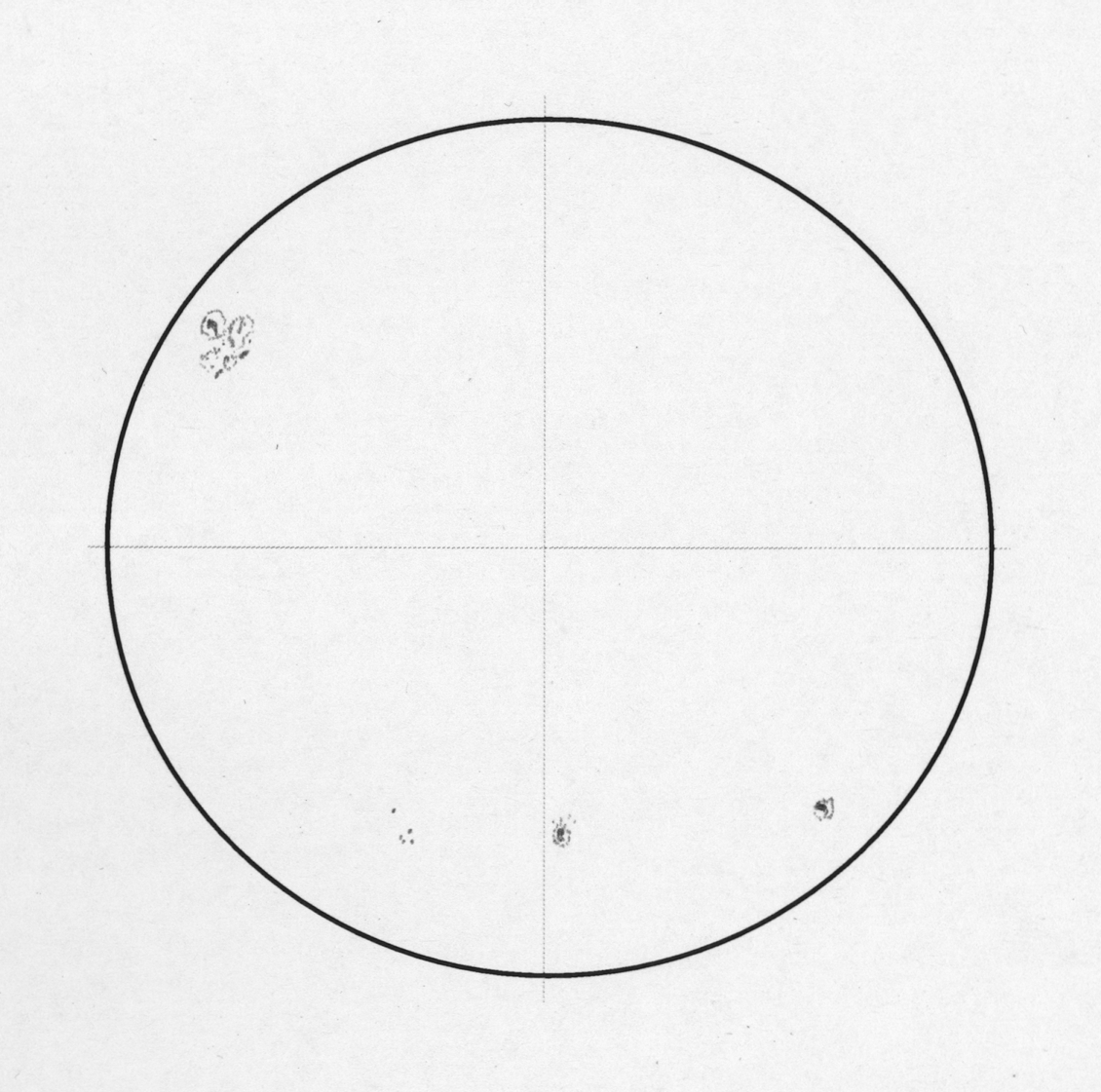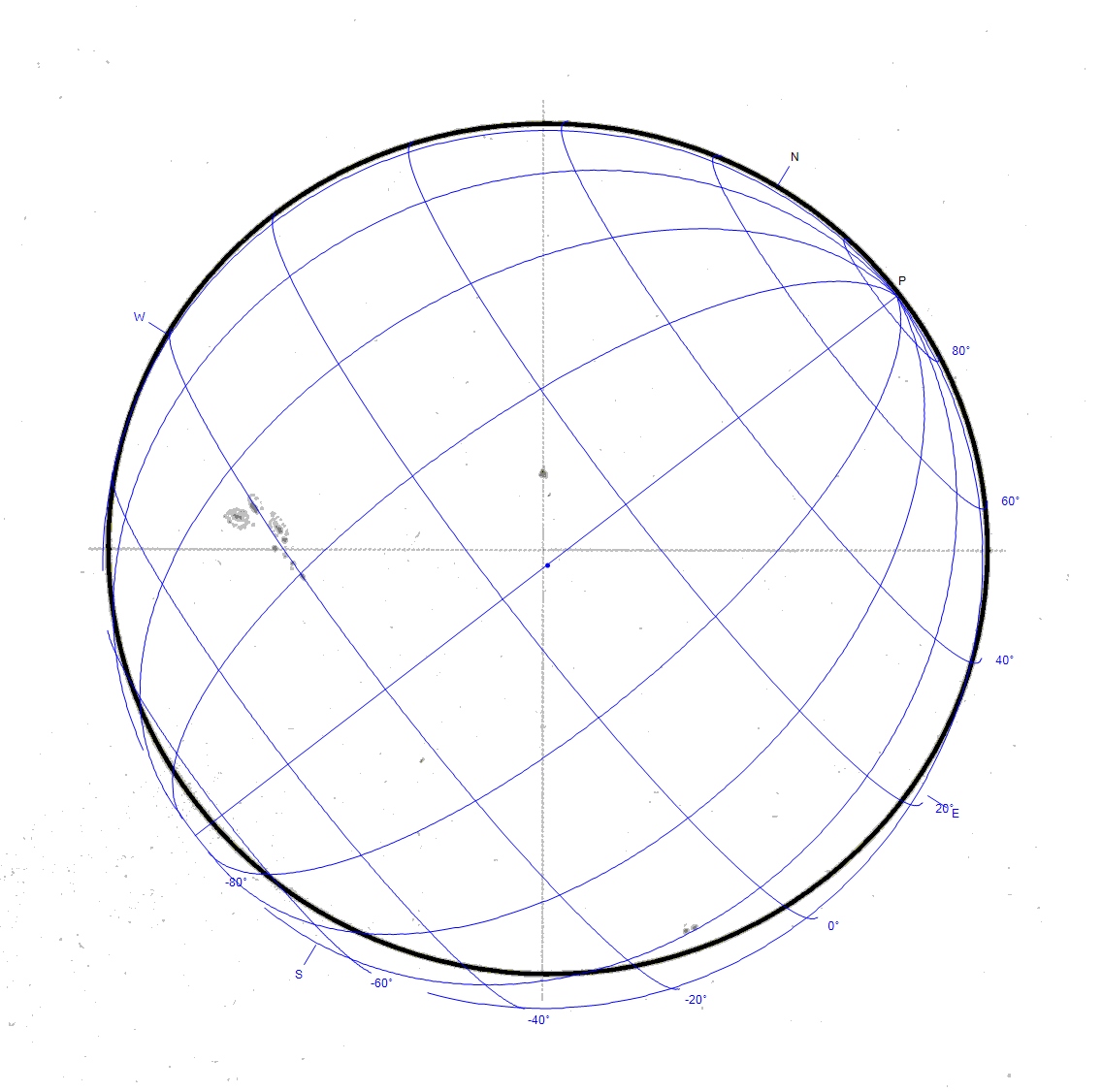 The following are the drawings made at the eyepiece and are displayed with the Zenith up with the second image with a Helio Viewer cardinal overlay. Click the image to see a full-size preview.