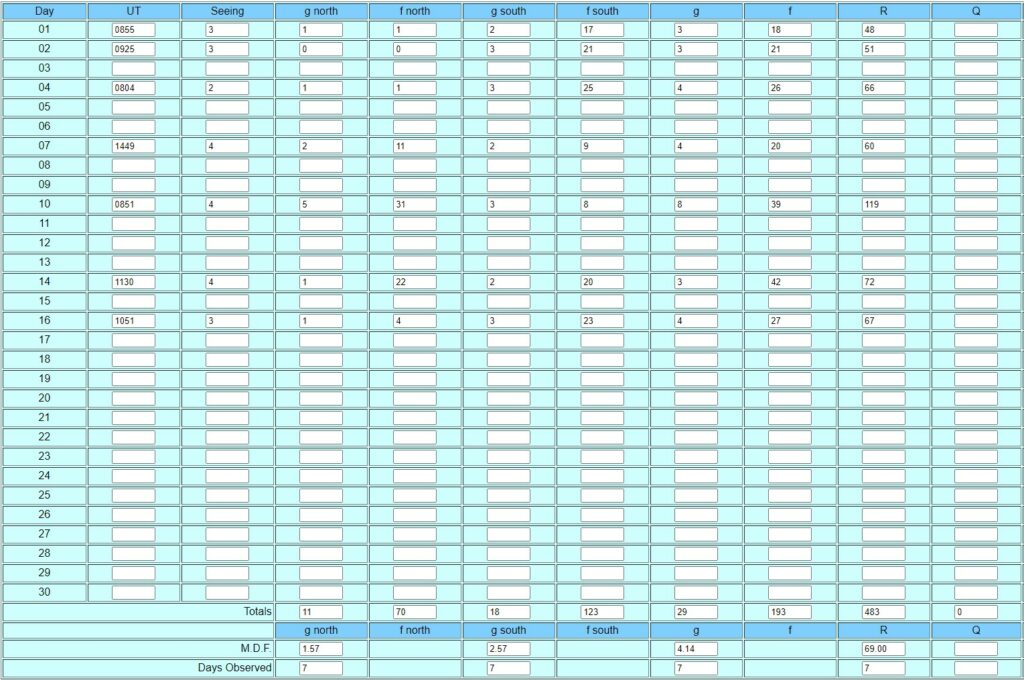 Here are my Solar sunspot counts for September. Not as many days as I did in August, but my first month using the same instrument setup and where I feel I have settled on a more consistent method in my observing workflow.