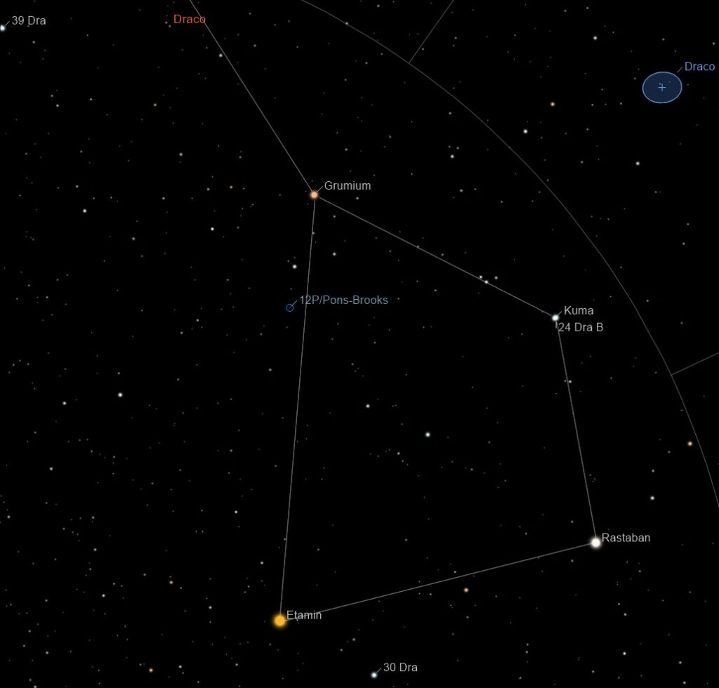 The position of the comet as stacked is RA: 17: 55 50.72 DEC: +55° 26 37.6