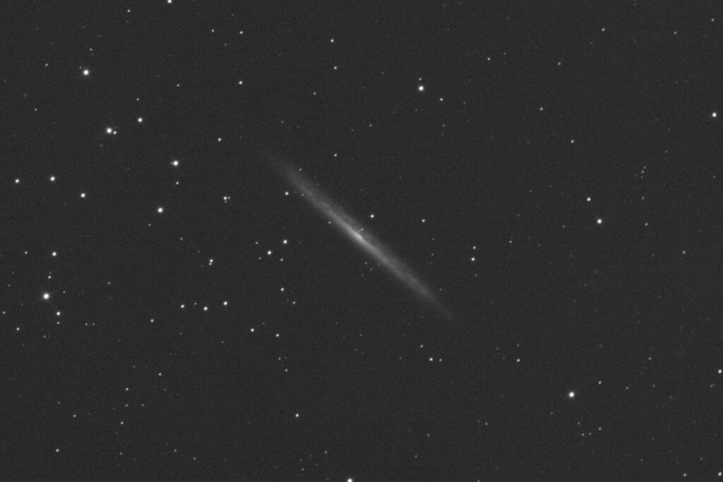 An edge on Galaxy which is huge. It is split into two halves along its length. The west half is the mottled dust lane edge on, where’s the east side you feel as though you are just peeking underneath to look inside where you see the core. This would be super to image for a long time.