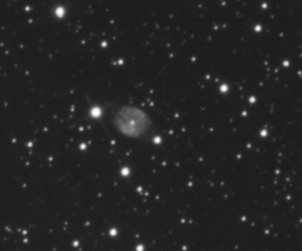 Another PN. This one is quite small. Just after two 30 sec frames it reminds me of Jupiter. There appears to be a bar running along its centre aligned N/S. I’m having to enlarge to 120% to see what little detail there is.