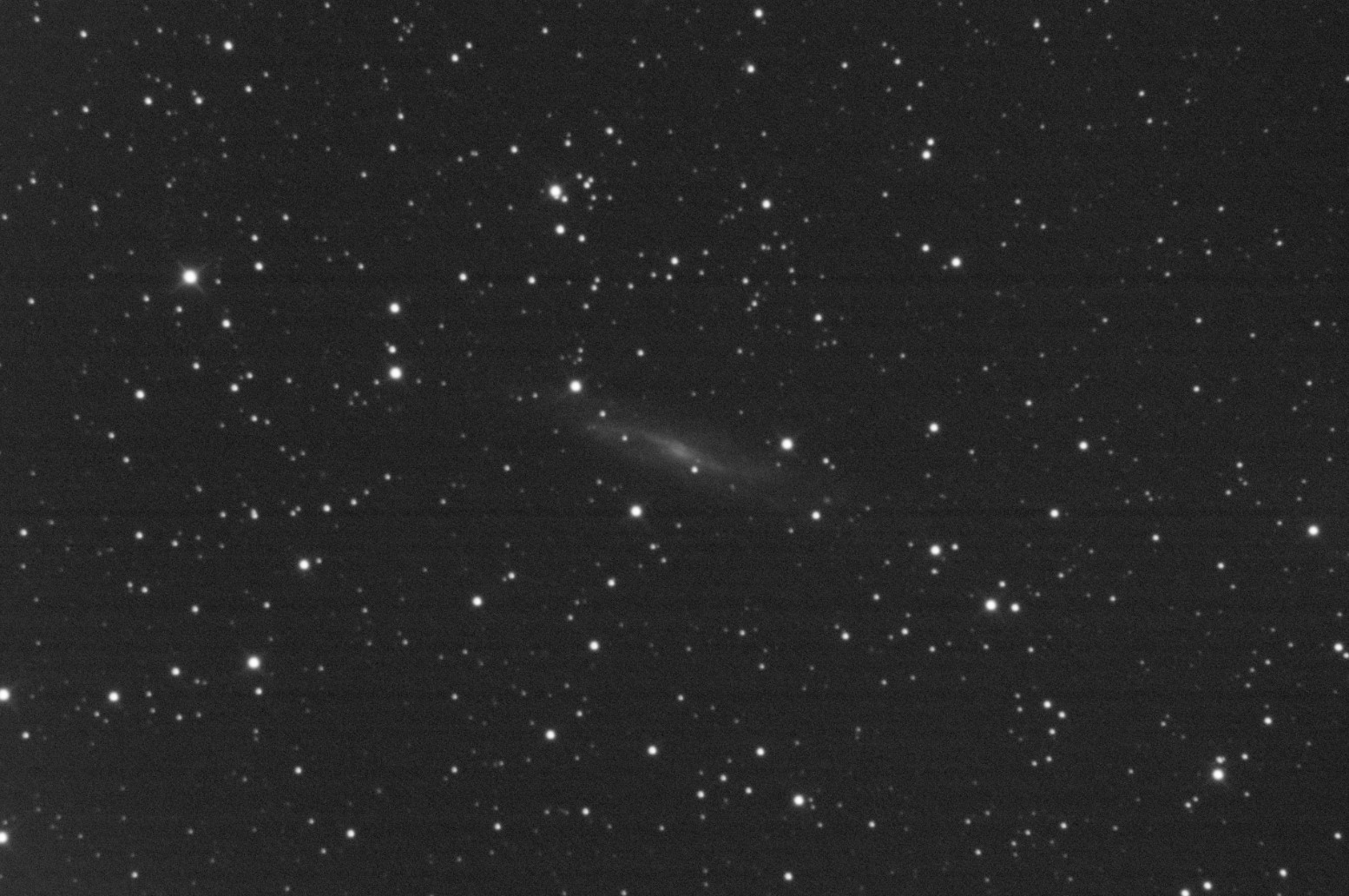 An mirrored ‘S’ galaxy about 5 arc/mins in diameter. The bottom tail at the West is sharp and distinctive, where the Easterly one blurs into what looks like a little nebulosity. It might even split into two strands about half way along its length.