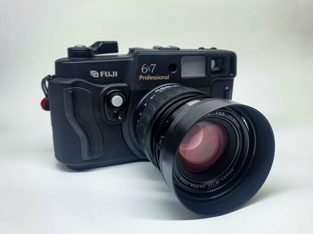 The Mk3 version of this lineup of huge neg rangefinders were made in the mid 1990’s, but the genesis of these go back to 1967 with the introduction of the G690 with its huge 6x9cm negative and a range of three lenses ranging from a 65mm to a 180mm and towards the end of the Mk2 version, there was even a 100mm autofocus f/3.5. In later years Fuji offered 6×8 and 6×7 versions for those that preferred the less wide aspect ratio.