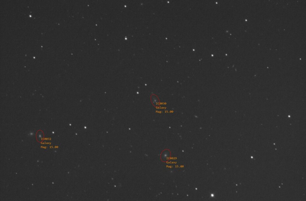 After 16 minutes you can see a peppering of smaller PCG galaxies forming a line starting at NGC770 and going to the West.