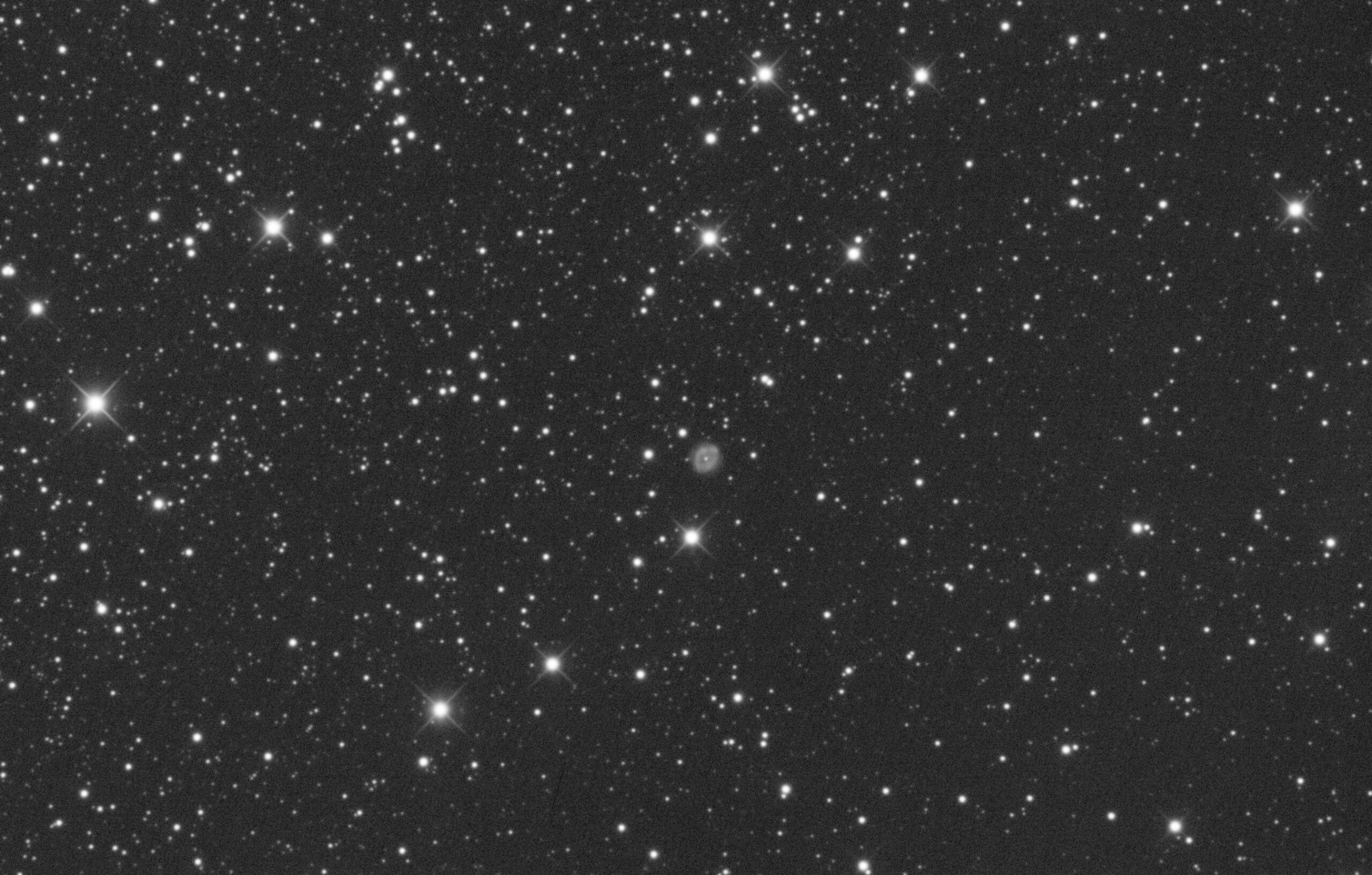 The target is easily seen after 5 mins of stacking. You can see a stellar core. Just to the East are a couple of stars running North/South. Again, seen fairly easily with technology.