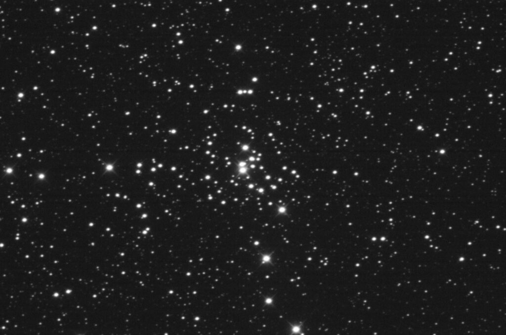 Made up of mostly 10 and 11th mag brighter stars and the rest 12 to 13th mag this cluster has a North South line orientation. The concentration at the centre form lines and loops which look a little like a scorpion with its curved claws to the Northeast, a central body and a line of stars that form the poisonous tail.