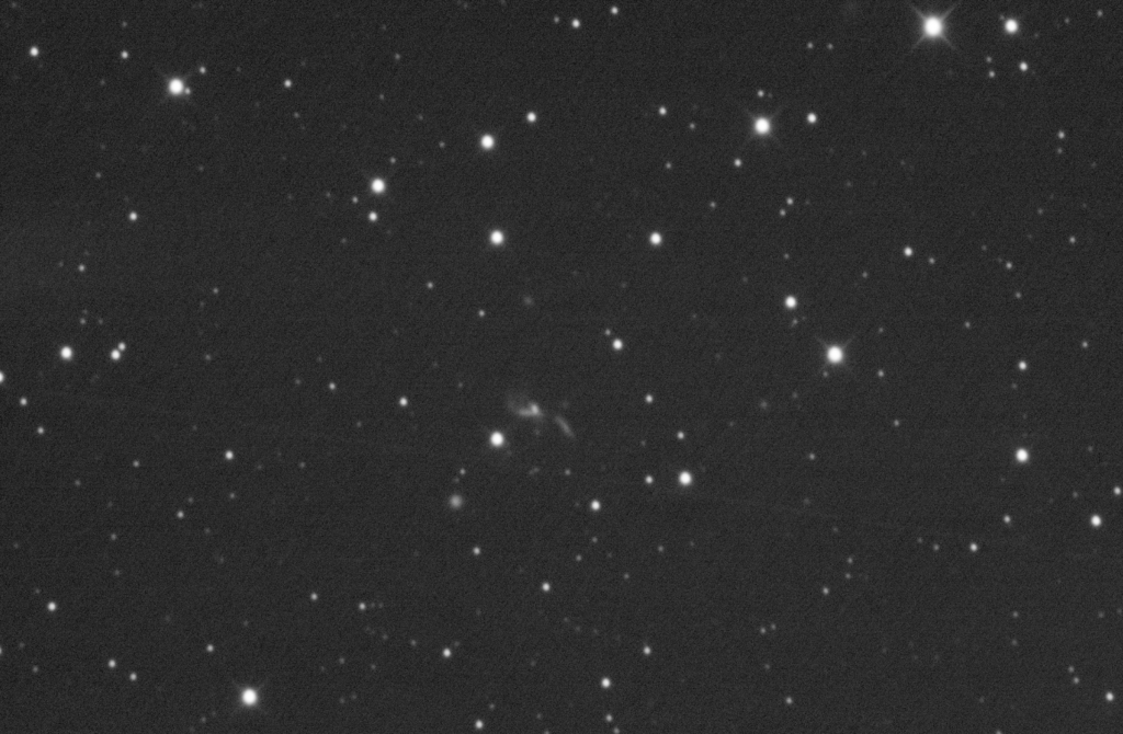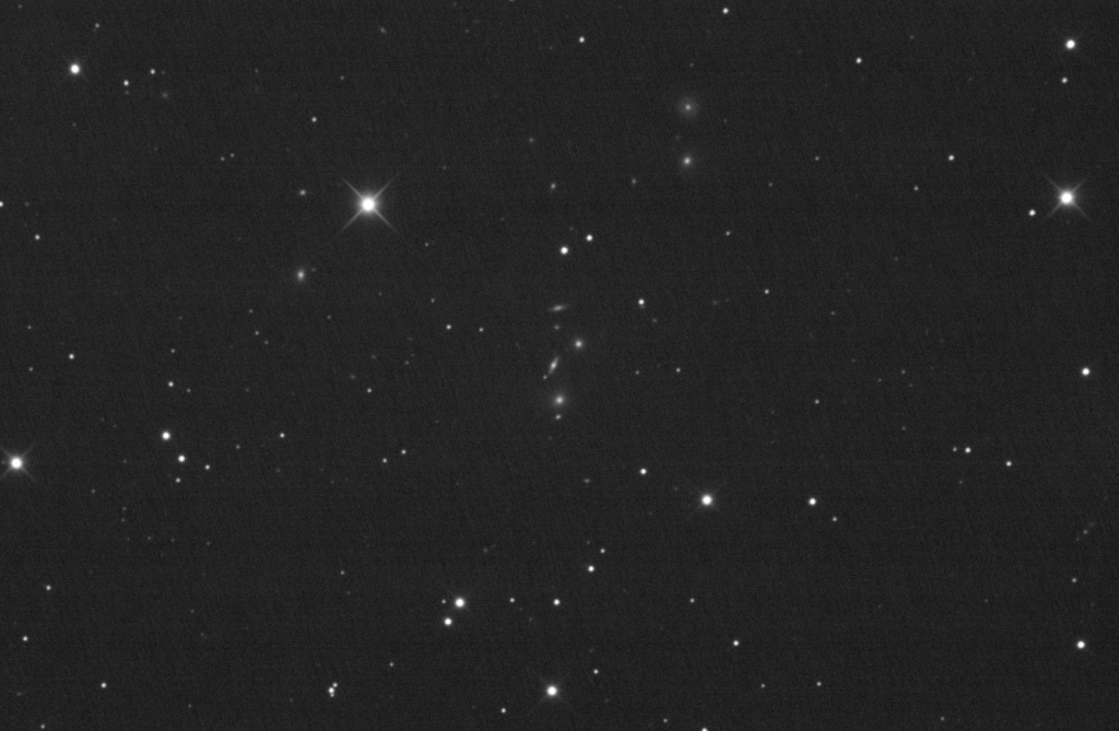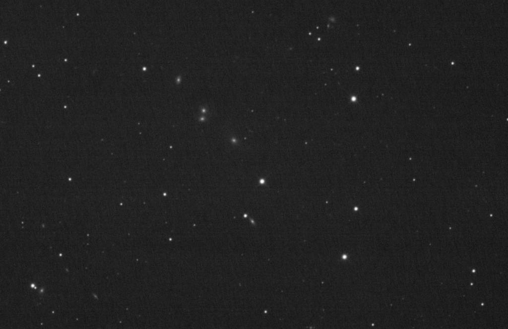 This is a really tight grouping of 4 galaxies. The Hickson paper suggests the group spans only 0.9 arcmin, but if you look at the graphic marking the distribution, this spans nearer 2 arcmins.