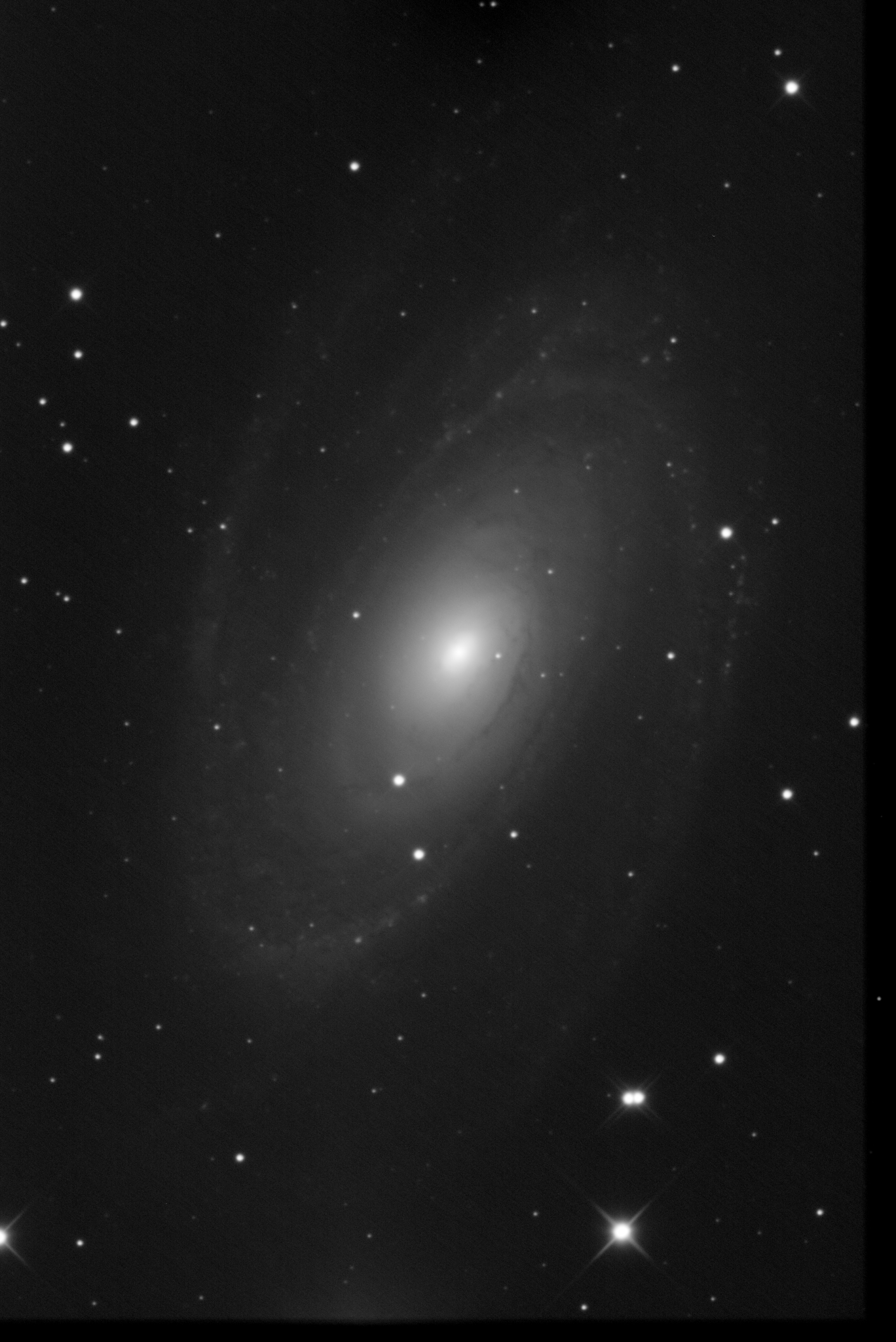 From the bright and elongated core, you can make out the first of the dark dust lanes to the SW about 2.5 arcmins out , curls all the way clockwise and exits the frame to the North. On this arm there is a concentration of star forming regions to the South