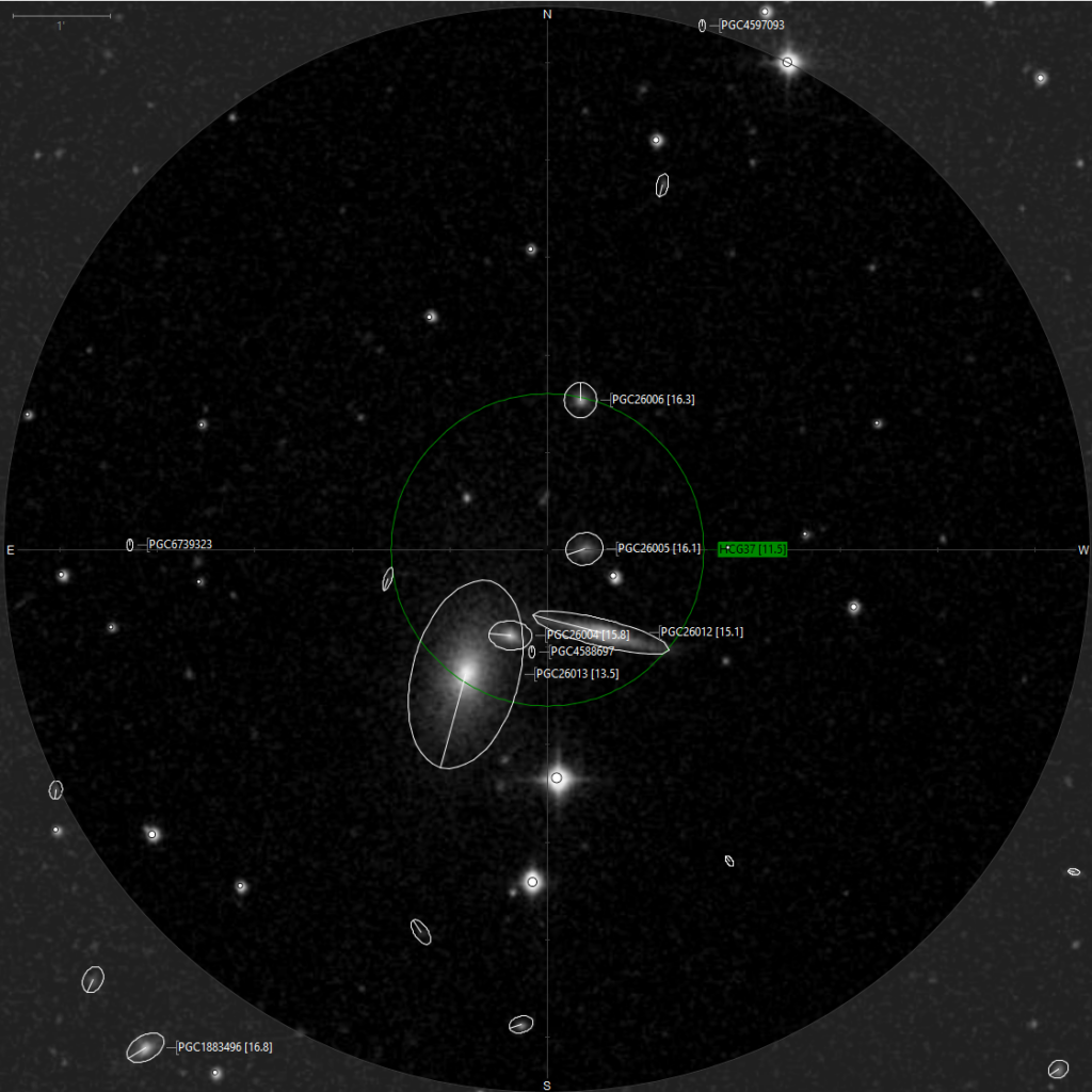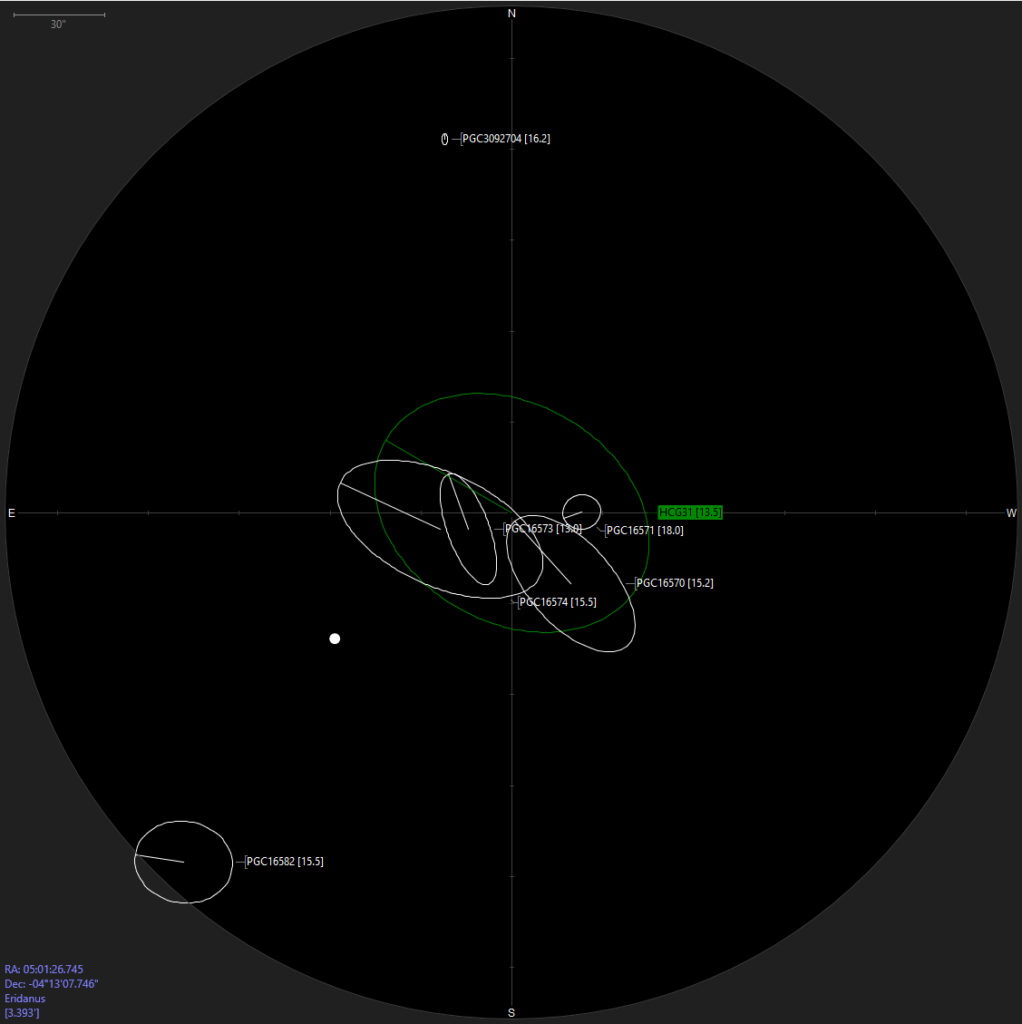 Just outside the official group is PGC28751, which if you were observing this visually, might mistake for being one of the group. I guess it’s always wise to check these things so you can correctly identify your observed constituents.