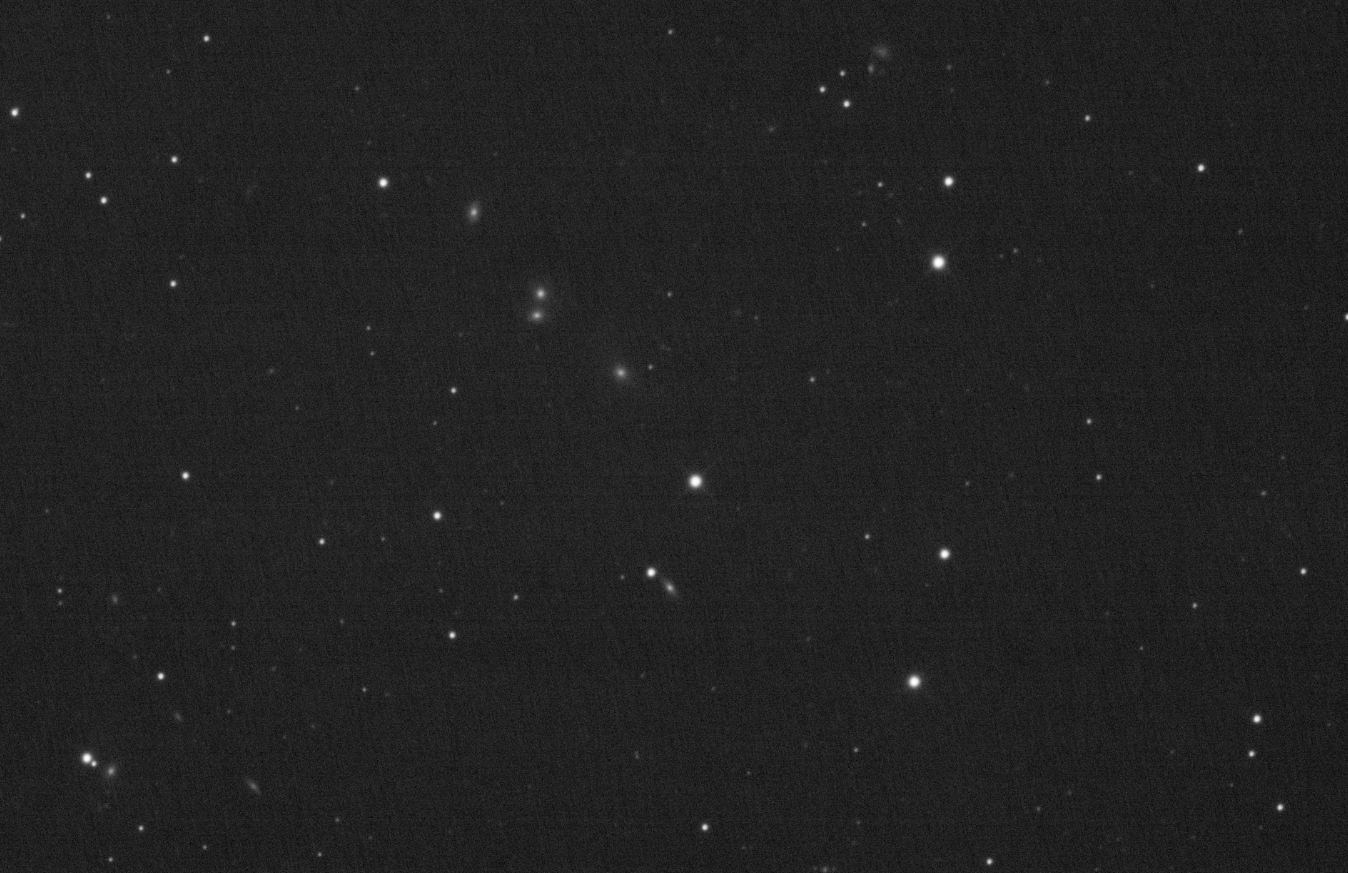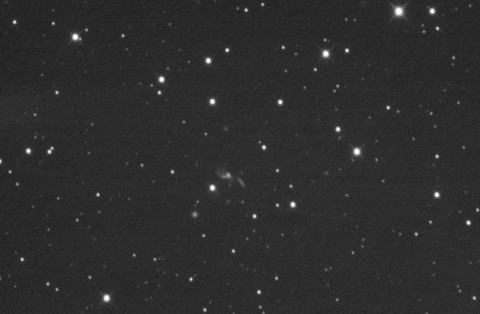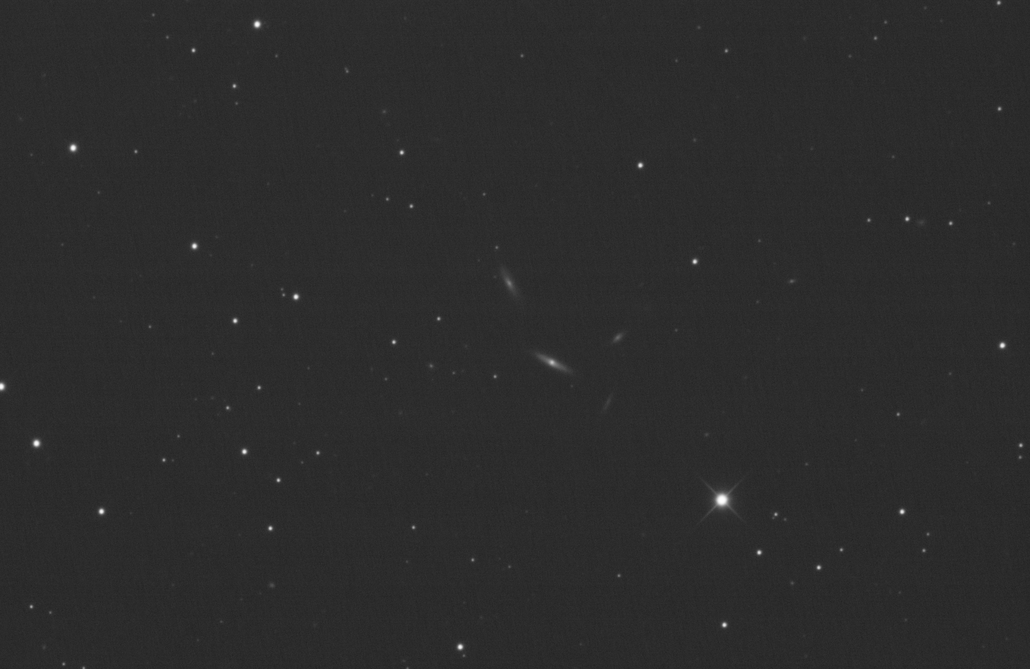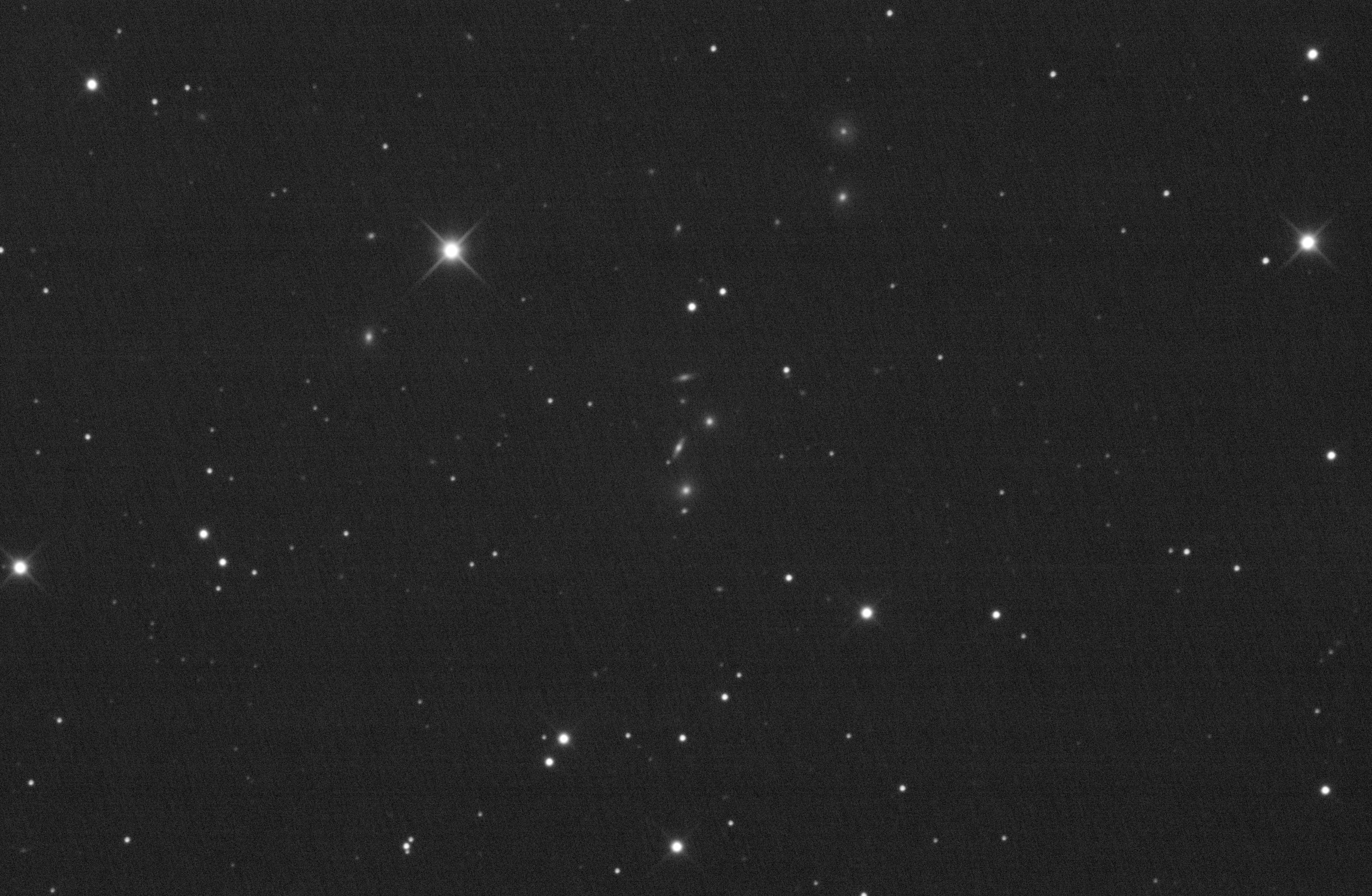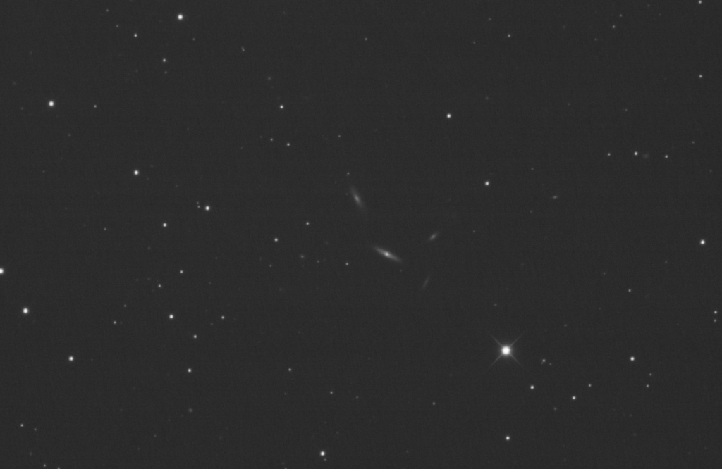 This is a really tight grouping of 4 galaxies. The Hickson paper suggests the group spans only 0.9 arcmin, but if you look at the graphic marking the distribution, this spans nearer 2 arcmins.