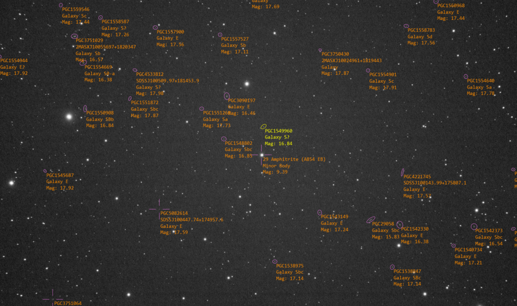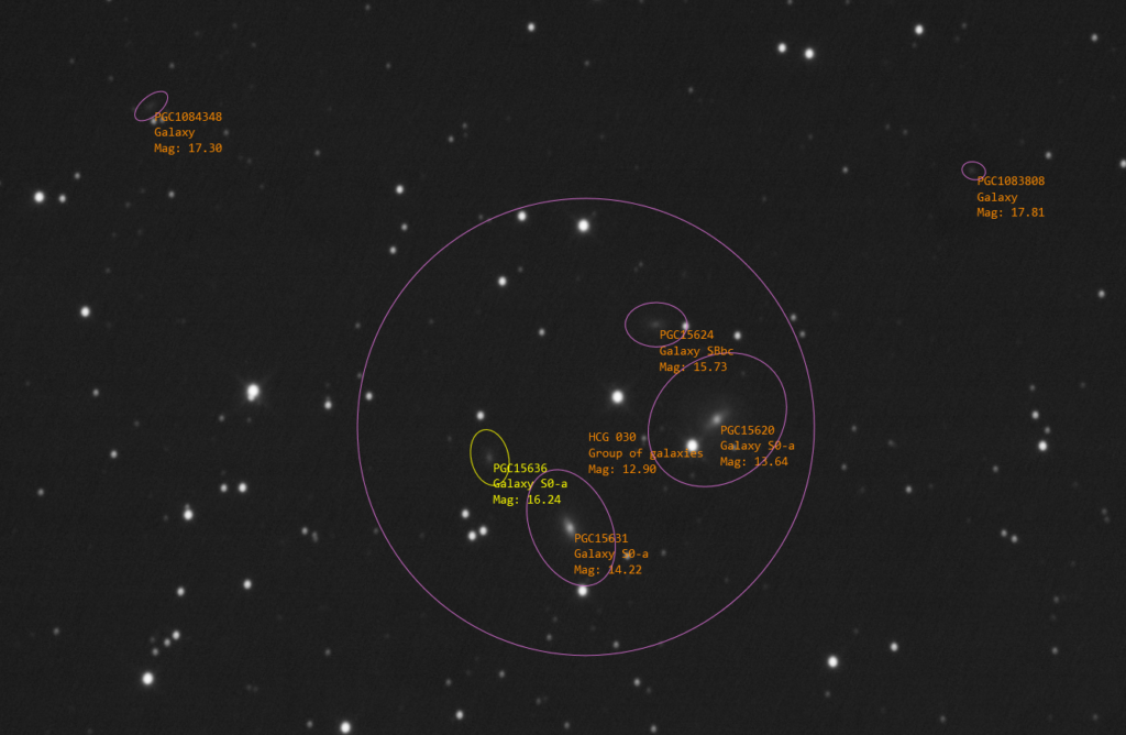 This has to have been one of the most intensive observing sessions I’ve had to date. 10 observed principle targets, containing a total of 26 objects that have been identified and included in these observations.