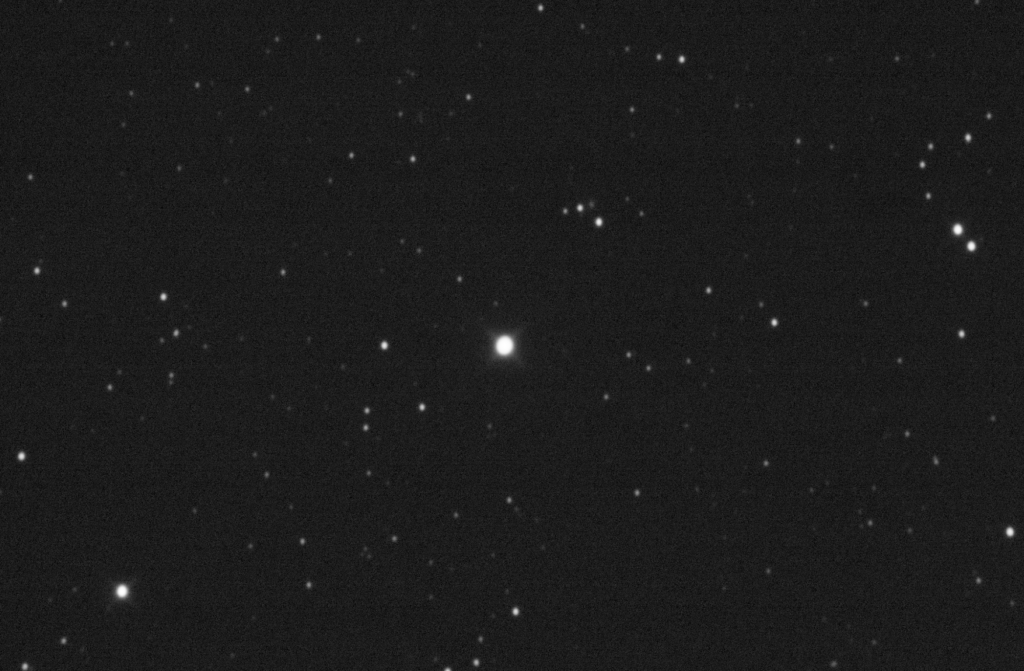 I took a stack of 40 x 15sec images and created a movie of its track across the sky during that 14 minutes. As you can see it’s not moving much in that time – only 37.2 “/hr @ PA 283.0°.
