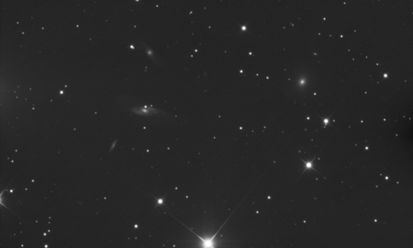 The two most interesting are NGC536. We are looking onto it at an angle. The bright core is stellar and has a fainter core that is elongated along the galaxy’s longest axis. I’m only seeing two spiral arms coming of the centra bar and thee extend out about 1.7 arcmin to the East and West.