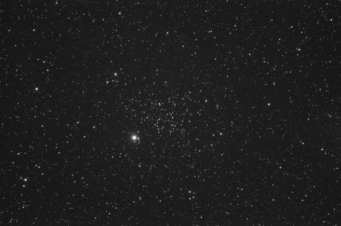 A small 12 arcmin cluster embedded within the outer reaches of M41. Three very bright stars dominate here. The 2.7 mag Iota Orionis at the centre which is also known as Struve 752 which is a triple star system The two other components are Struve 752B 7.7 mag and Struve 752C 10.0 mag. I cannot make out the B component as the light of this is dwarfed by the principle star, but I can see the c component in the image. The separation of these two is 50 arcsecs.