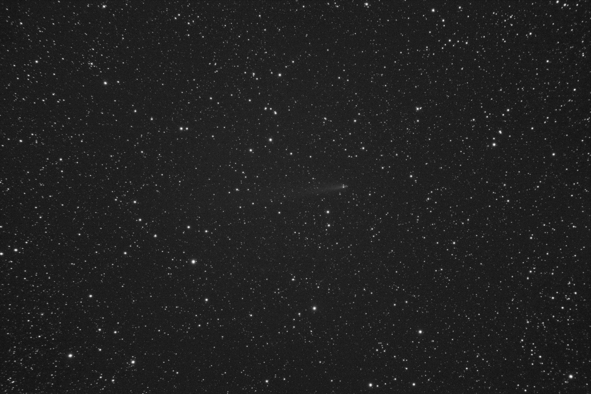 At least you can see the tail here. Extending about 9 arc min at a PA of 97 degrees. The short focal length prohibits any sight of the two fragmentary components.