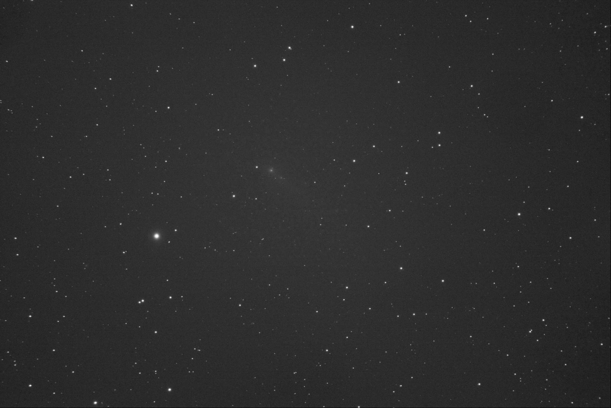 Not much to see here. But there is a bright core and a faint Coma, which is too small to measure accurately from the image. The bright star to the NW of the target is HD187182.