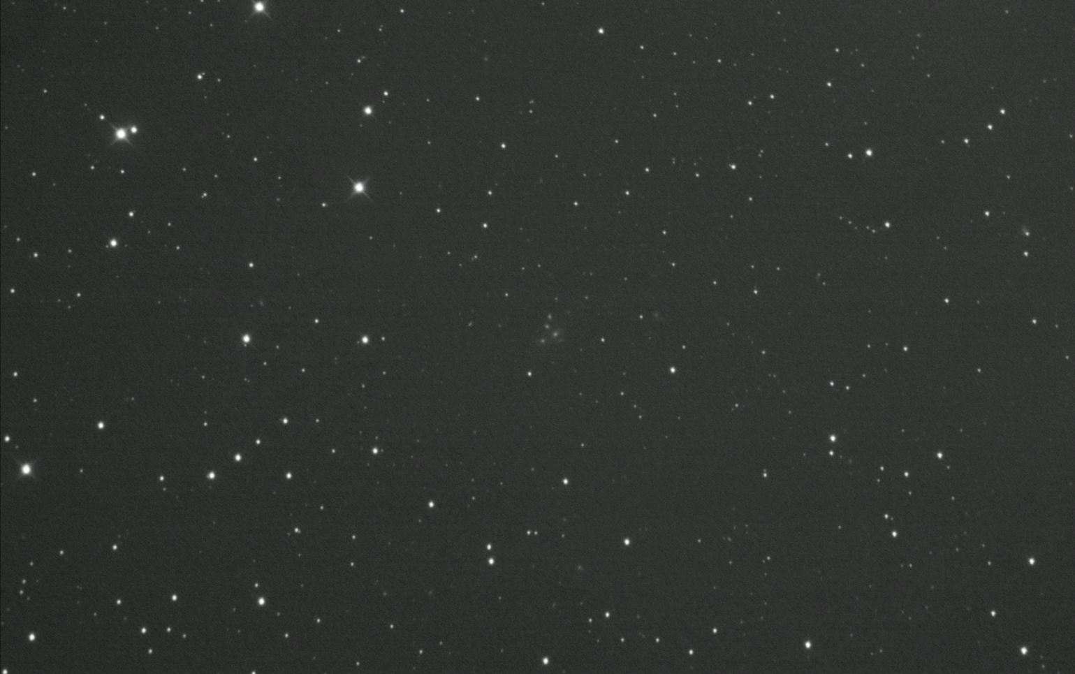 HCG99 contain 5 component galaxies. Working clockwise, according to Hickson, PCG63 14.6 mag and PGC58 15.7 mag are interacting, but here in this observation, there looks to be clear space between them. SW of these is PCG54 14.8 mag and to the SE of this are the last two, which are barely visible. PCG57 17.7 mag and PCG60 17.3 mag. These last two are so faint that they could be mistaken for stars of a similar magnitude.