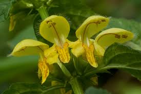 HEIGHT to 45cm Attractive, hairy perennial with long, leafy runners and upright flowering stems. Grows in woodland rides and hedgerows, mainly on basic soils. FLOWERS 17–20mm long, rich yellow adorned with reddish streaks, the lip divided into 3 equal lobes; in whorls (Apr–June). FRUITS Nutlets. LEAVES Oval to triangular, toothed and similar to those of Common Nettle or White Dead-nettle . STATUS Locally common in England and Wales but scarce or absent elsewhere. Note, the subspecies argentatum has variegated leaves, is popular in gardens and is sometimes naturalised.