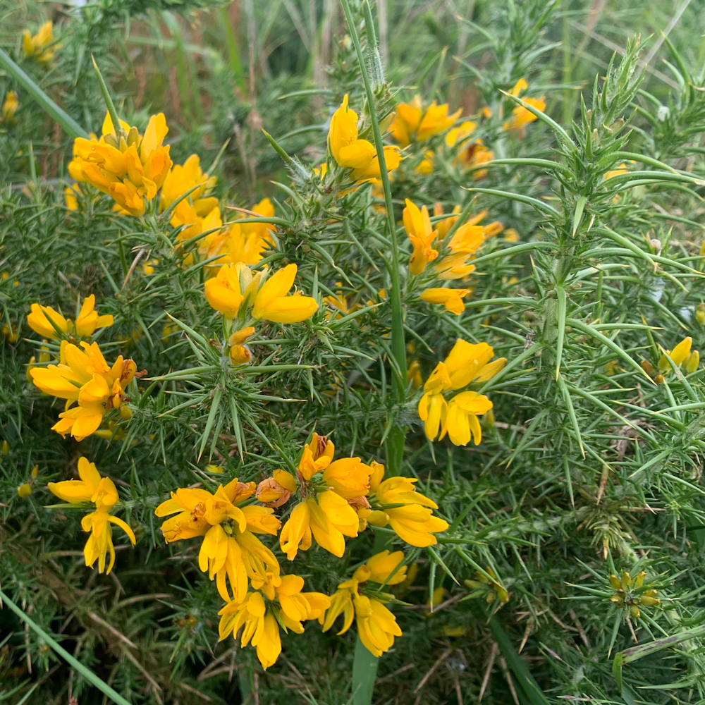 HEIGHT to 2m Evergreen shrub with straight, grooved spines, 15–25mm long. Found on heaths and grassy places, mainly on acid soils. FLOWERS 2cm long, bright yellow, coconut-scented, with basal bracts 4–5mm long (Jan–Dec, but mainly Feb–May). FRUITS Hairy pods. LEAVES Trifoliate when young. STATUS Widespread and common throughout.