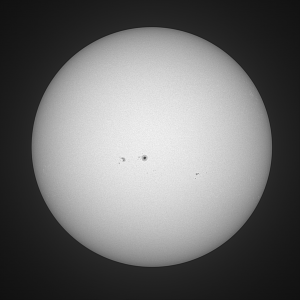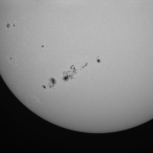 Session Data Date: 03/12/2025 Time: 12:17 – 13:17 UT Seeing: II. Good – Slight Transparency: III. Clear with slight haze Temp: 10 C, Air Pressure: 1019mb Humidity: 87% Dew Point: 8 C Wind Speed: 5 mph Average SQM: magn/arcsec^2 Scope: Altair 250mm R.C at f/5.3 Camera: ZWO ASI 183MM. No darks or flats. Click image to view full size. I had been watching the development of one of the largest sunspot groups of this…