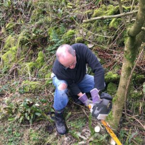 Another first, with some drastic coppicing of the row of trees at the First Field edge of the garden. Over the years the willow and scrubby bush have rather stifled the rather nice Ash trees that we believe were planted about 15 years ago. Before we started hacking. Before we started hacking. I think the above is the leafy bit of Spanish Bluebells. Sister Sandi getting stuck in The chainsaw starting to pay for…