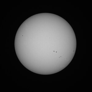Session Data Date: 09/04/2025 Time: 10:05 – 11:05 UT Seeing: II. Good – Slight Transparency: III. Clear with slight haze Temp: 12 C, Air Pressure: 1029mb Humidity: 58% Dew Point: 4 C Wind Speed: 9 mph Scope: TMB 80 f/6 Camera: ZWO ASI 183MM , SBIG G filter. No Darks or Flats taken. All Images are North up and East to the Left Click image for larger version Solar Parameters Bo: -6.03 degrees Lo:…
