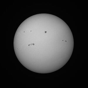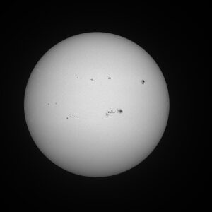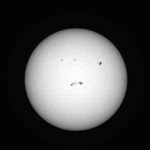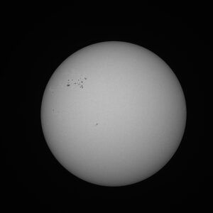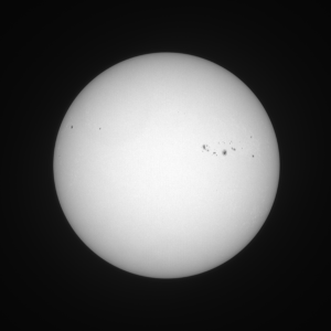 Session Data Date: 31/01/2025 Time: 15:02 – 16:02 UT Seeing: II. Good – Slight Transparency: III. Clear with slight haze Temp: 8 C, Air Pressure: 1027 mb Humidity: 82% Dew Point: 6 C Wind Speed: 4 mph Scope: TMB 80 f/6 Camera: ZWO ASI 183MM , SBIG G filter. No Darks or Flats taken. All Images are North up and East to the Left Click image for larger version Solar Parameters Bo: -6.00 degrees…