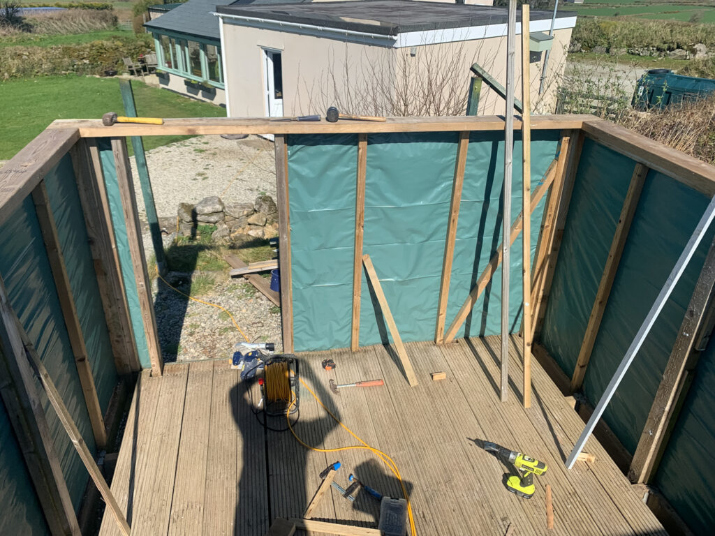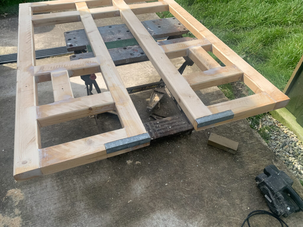 The first task was to remove all the old roof runner hardware; the door and all the plywood inner lining and then add a new 50mm x 150mm topside rail around the of the sides. I now have somewhere to put my tea when out observing.