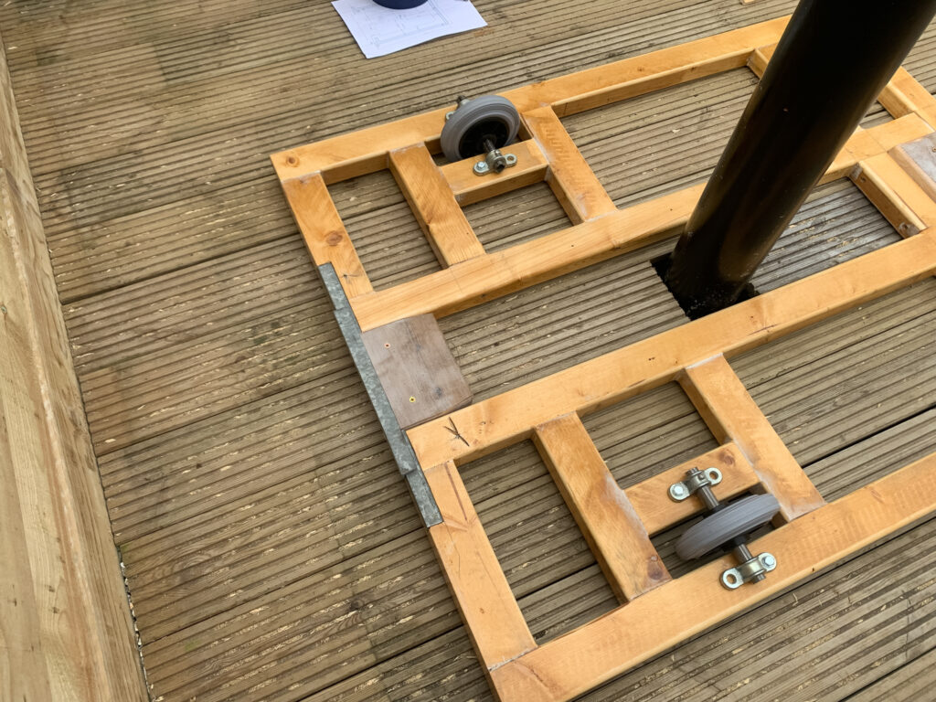 The frame runs on a couple of wheels and you only have to lift the back of the structure by 30mm at the back to allow the assembly to run freely backwards away from the pier. The wheels have stainless roller bearings, so are never going to rust up.