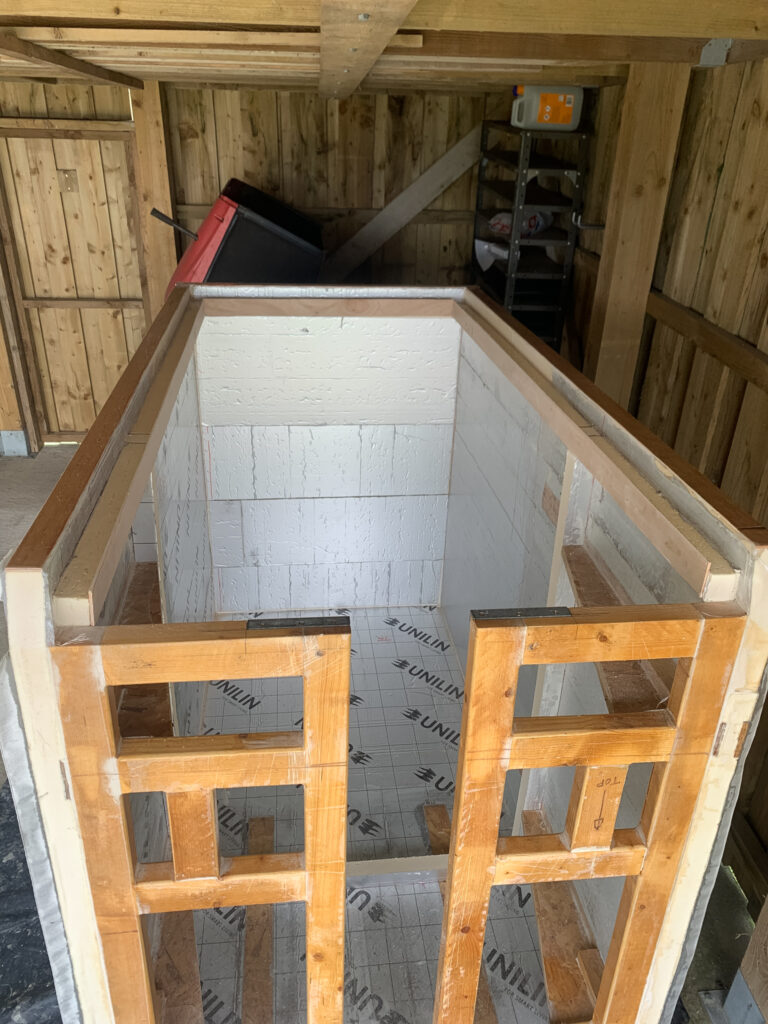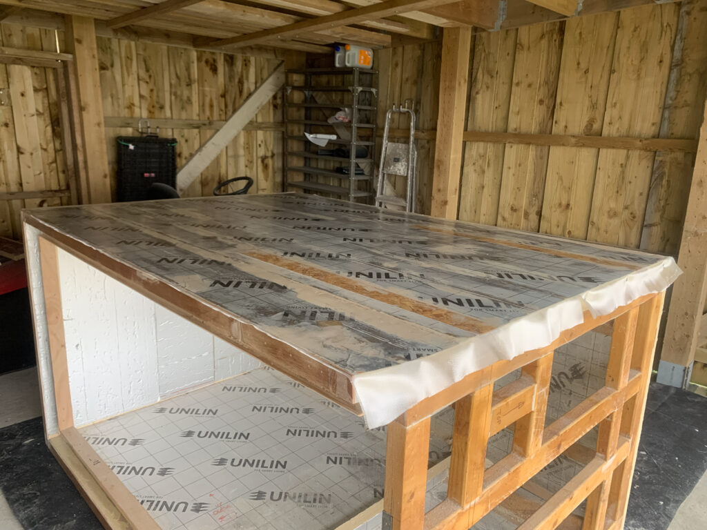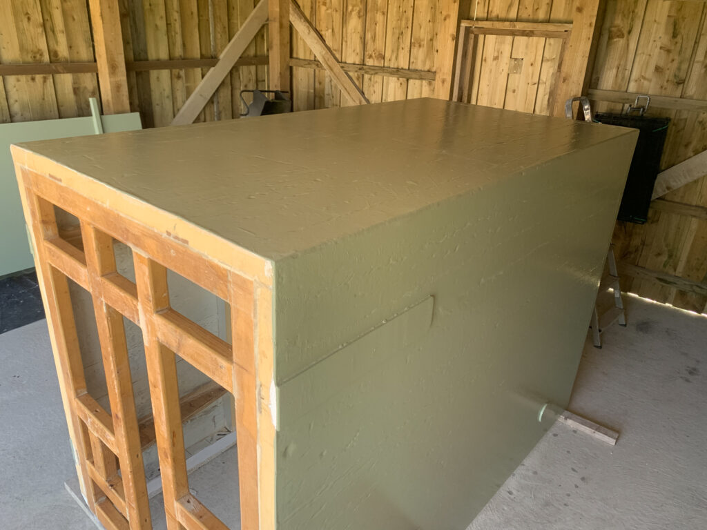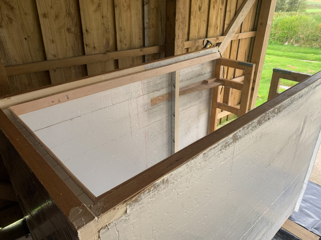 To keep things light, I used 50mm thick insulation board foam, which was then coated with a thin layer of surfboard woven fibreglass cloth and epoxy resin. The other advantages of using foam is that it insulates the inside against the Summer heat and Winter cold throughout the season. The other plus is the weight and incredible strength.
